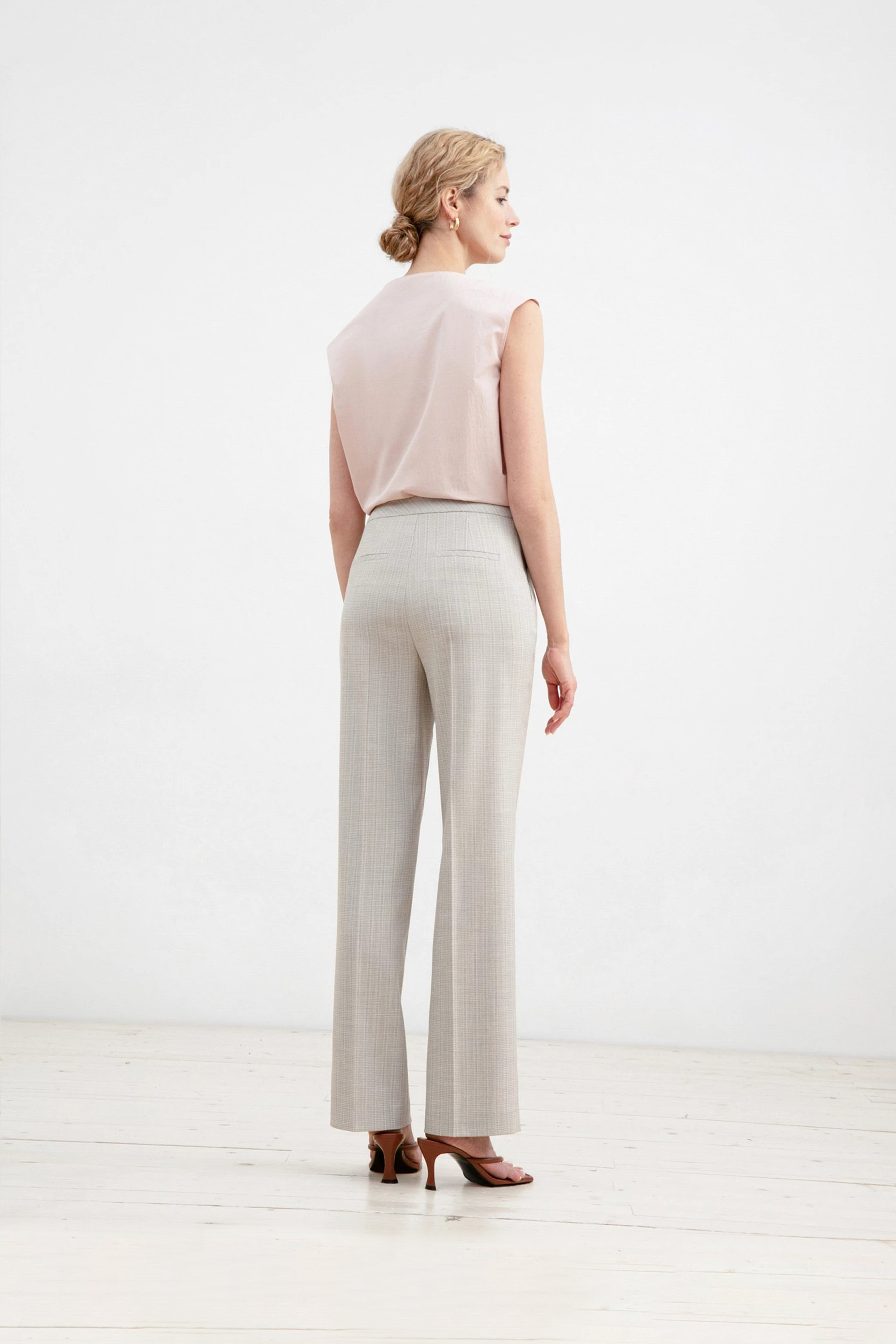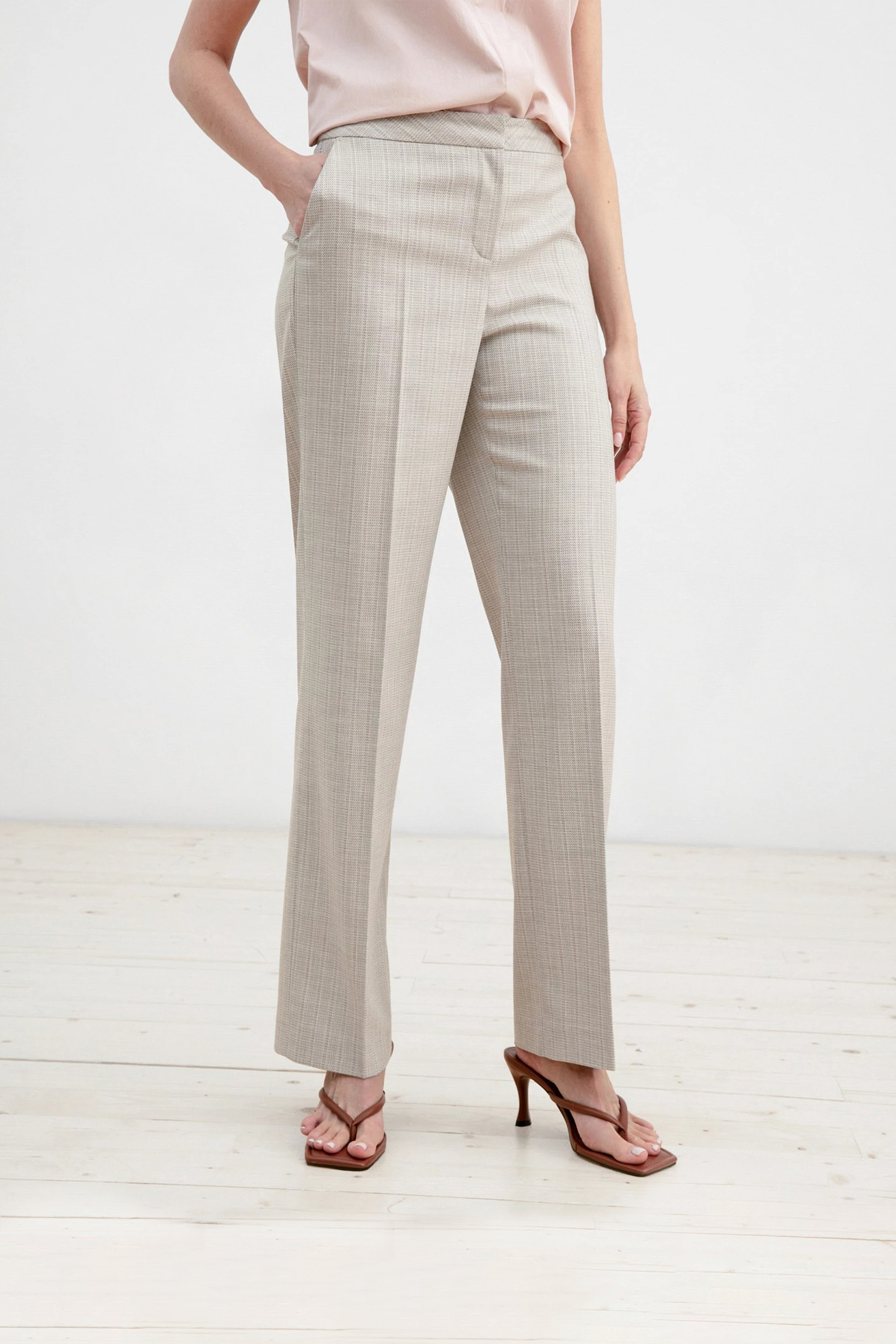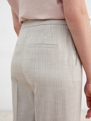 Российский бренд. На сайте указаны Российские размеры. Стильные брюки средней посадки из вискозной костюмной ткани прямого силуэта со стрелками на притачном поясе. Застежка спереди на молнию и крючок. Модель идеально сочетается с жакетом POMPA (арт. 3109480RM0190).