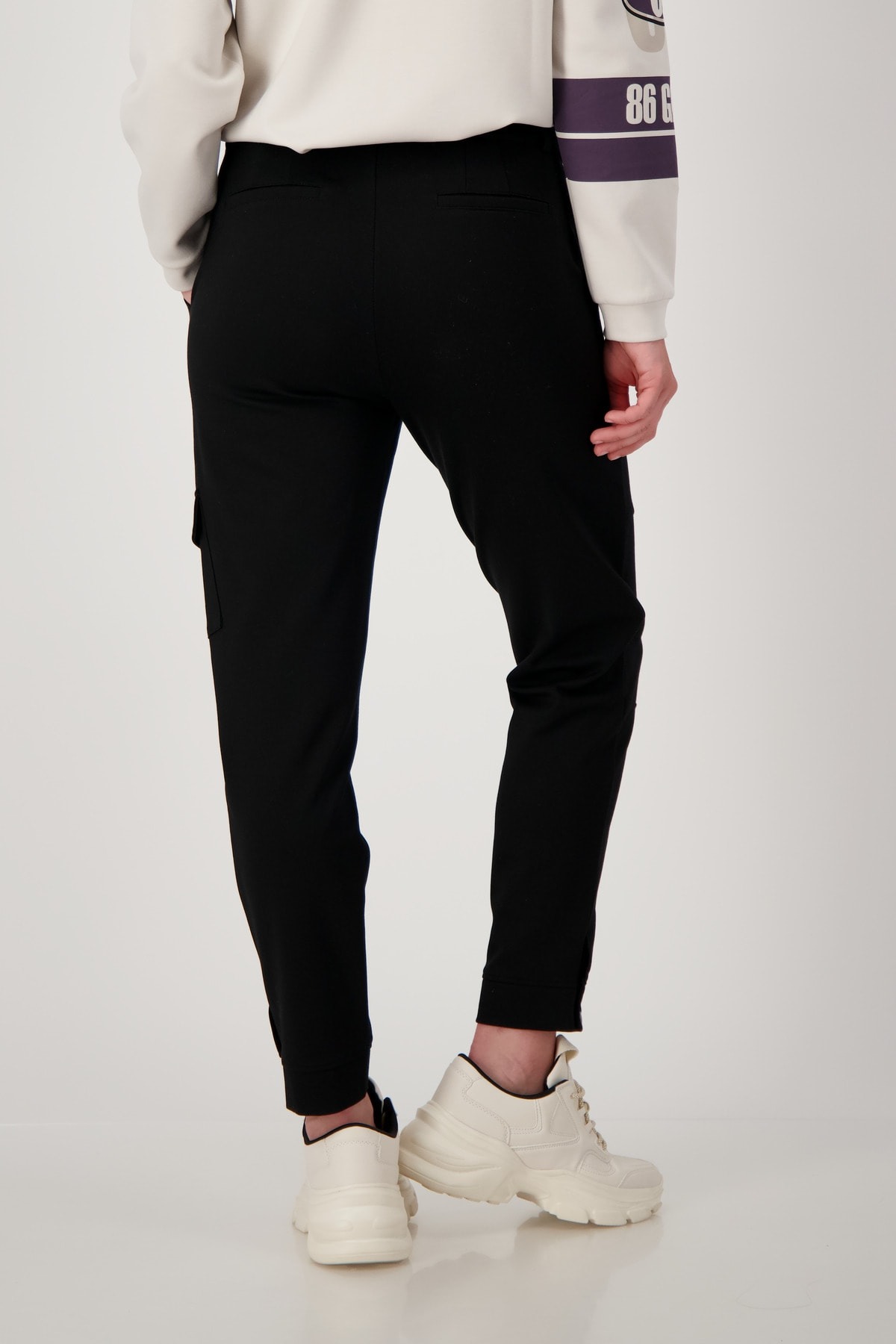 На сайте указаны российские размеры. Брюки в стиле джоггер от monari сочетают в себе непринужденный стильный дизайн и высокую функциональность. Удобная эластичная ткань гарантирует оптимальную посадку и максимальную свободу движений, а мягкая вискозная ткань, смешанная с полиамидом, особенно удобна. Накладные карманы спереди, большой карман с клапаном на кнопке на уровне колена и фальшивые прорезные карманы сзади незаметно выделяются красивыми продольными и поперечными разделительными швами спереди и придают модели изюминку. Рост модели 175 см Длина по внутреннему шву 68 см.