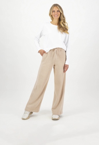 На сайте указаны российские размеры. Супермягкие брюки тонкой вязки с завязками. Спереди есть два практичных кармана, а завязки и широкий эластичный пояс обеспечивают удобство ношения. Благодаря прямому крою и незамысловатому однотонному цвету брюки универсальны, подчеркивая фигуру. Рост модели 177 см Измерения для 44 размера: Талия: 80 см Бедра: 106 см Длина штанины по внутренней стороне: 78 см.