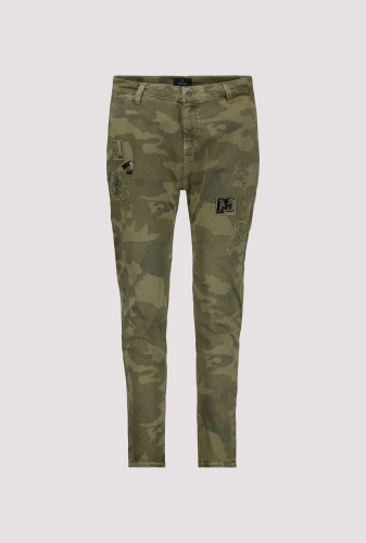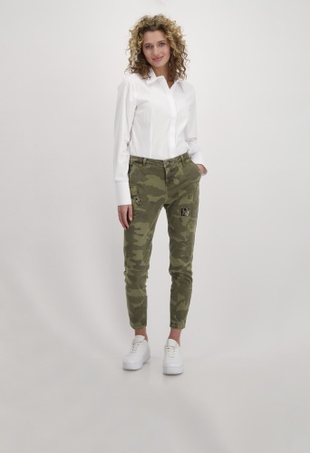 На сайте указаны российские размеры. Эти повседневные брюки-дудочки от monari — настоящее чудо сочетания модных стилей. Независимо от того, как вы хотите это комбинировать, вы всегда на высоте! Узкий крой с нормальной посадкой умело подчеркивает вашу женственность, а сплошной принт с камуфляжным рисунком и сверкающими стразами на заплатках спереди также создает прохладный гламурный стиль. Инвестируйте в неизменный фаворит и комбинируйте по своему усмотрению. Рост модели 176 см Длина по внутреннему шву 72 см во всех размерах.