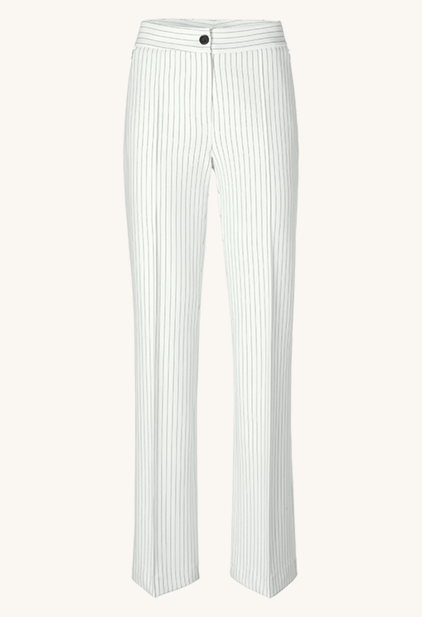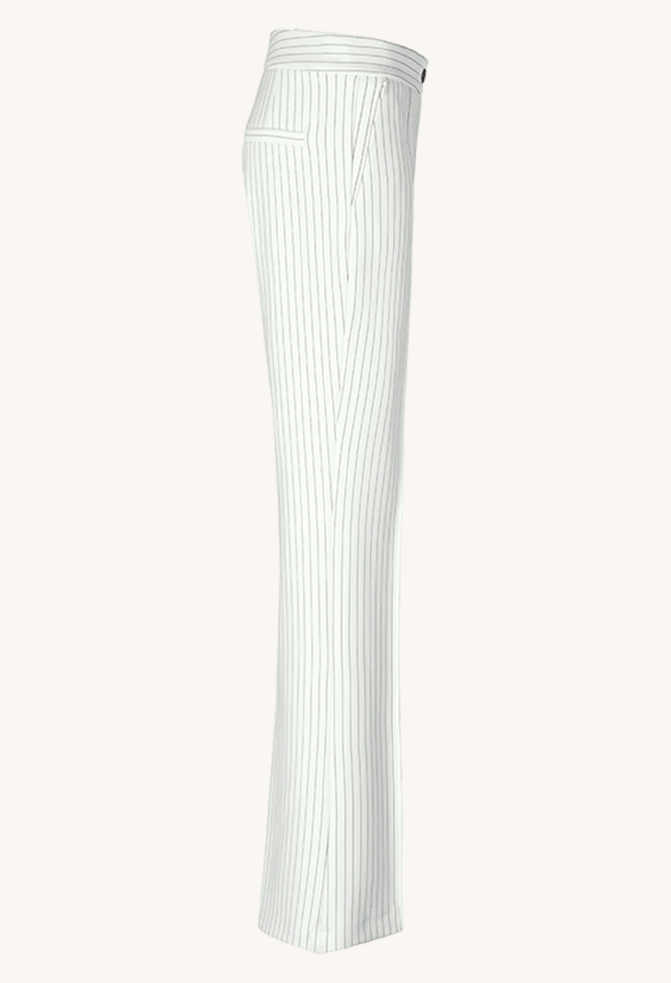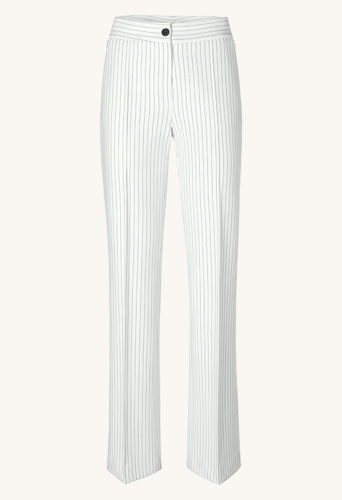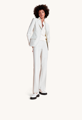 На сайте указаны российские размеры. Красивый тонкий силуэт включен в эту облегающую посадку. Это обеспечивается узкой формой, элегантной складкой, а также классическим шикарным узором в тонкую полоску, которые оптически растягиваются. Слегка эластичный трикотаж очень удобен в носке. Брюки смотрятся очень нарядно в качестве легкого костюма с соответствующим блейзером из того же материала. Рост модели 180 см.