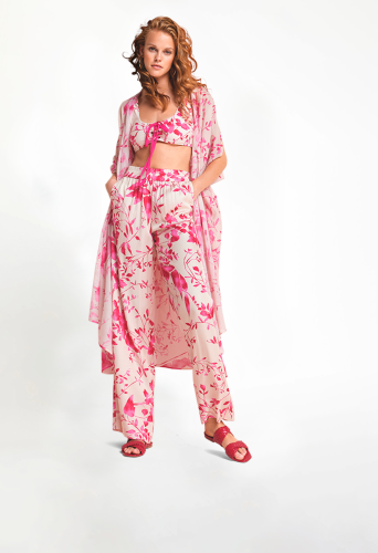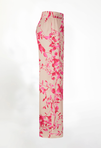 На сайте указаны российские размеры. Легкие и свободные, с женственным цветочным принтом и принтом листьев на струящейся вискозе: красивые широкие брюки палаццо покорят вас. Будь то простая рубашка, кимоно или короткий топ, сандалии или мюли, мы меняемся в зависимости от вашего настроения. Хит в теплые летние дни. Модель ростом 177 см.