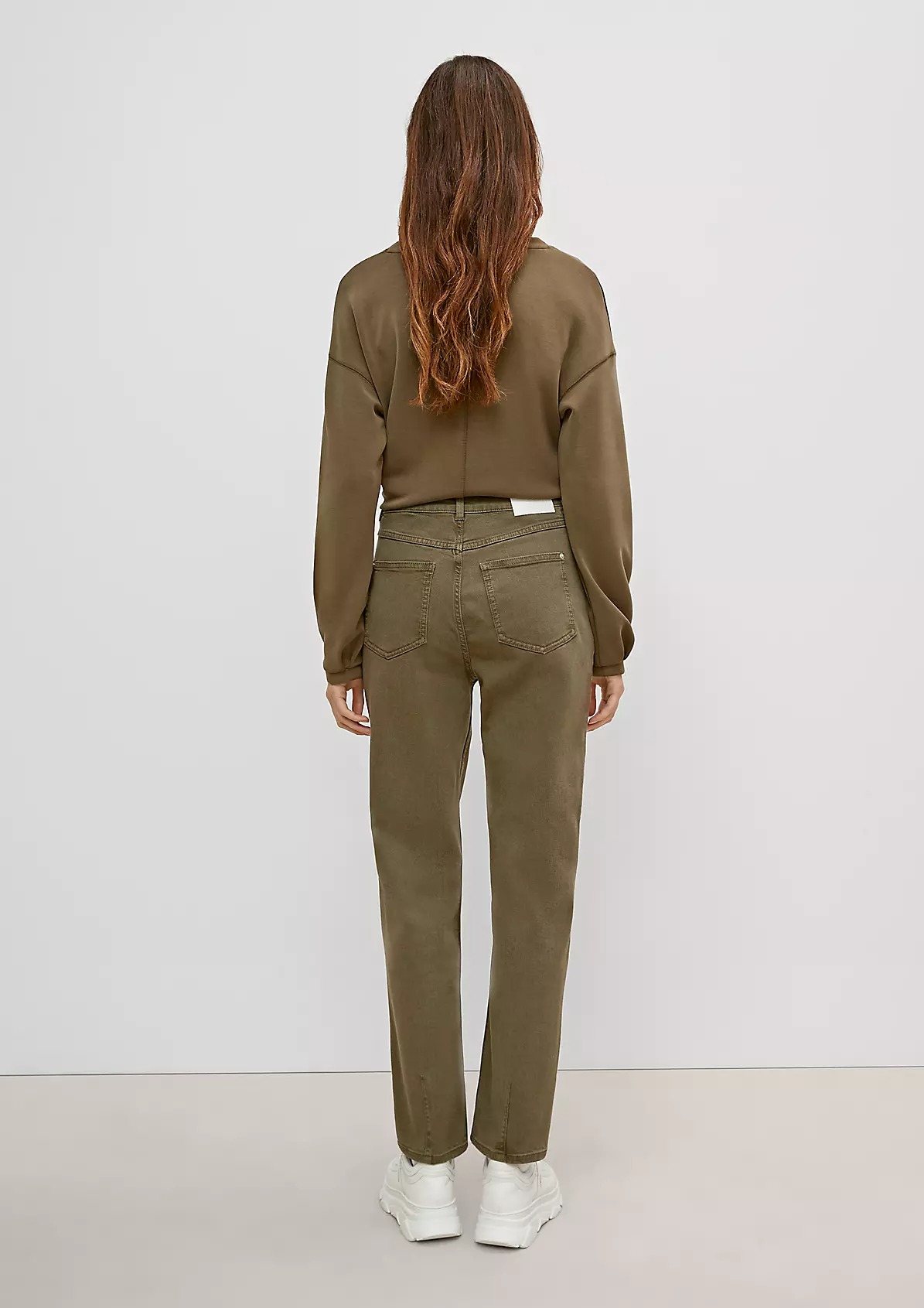 На сайте указаны российские размеры. Джинсы MOM обычной посадки на пуговице и потайной молнии. Длина штанины по внутренней стороне для размера 42 около 74 см. Рост модели 176 см.
