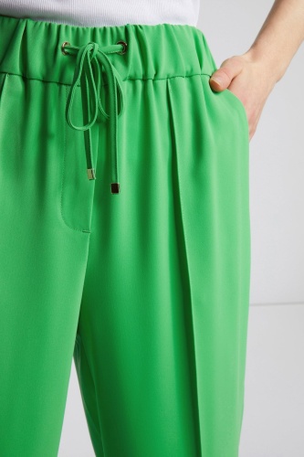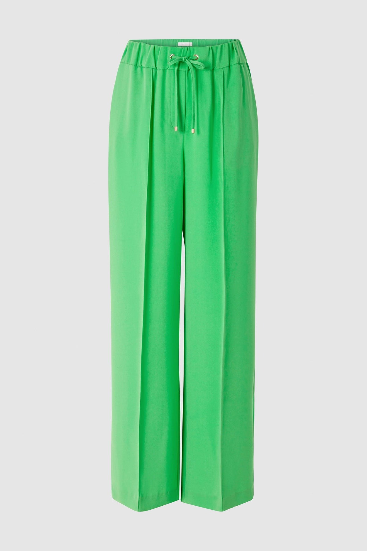 Свободные брюки с широкими штанинами создают повседневный образ. Модель сделана из мягкого, струящегося, устойчивого материала, а элегантно прошитая складка делает их подходящим для бизнеса. В то время как эластичный пояс со шнуром придает спортивный вид. Карманы завершают дизайн. Длина в размере 42: 78 см.