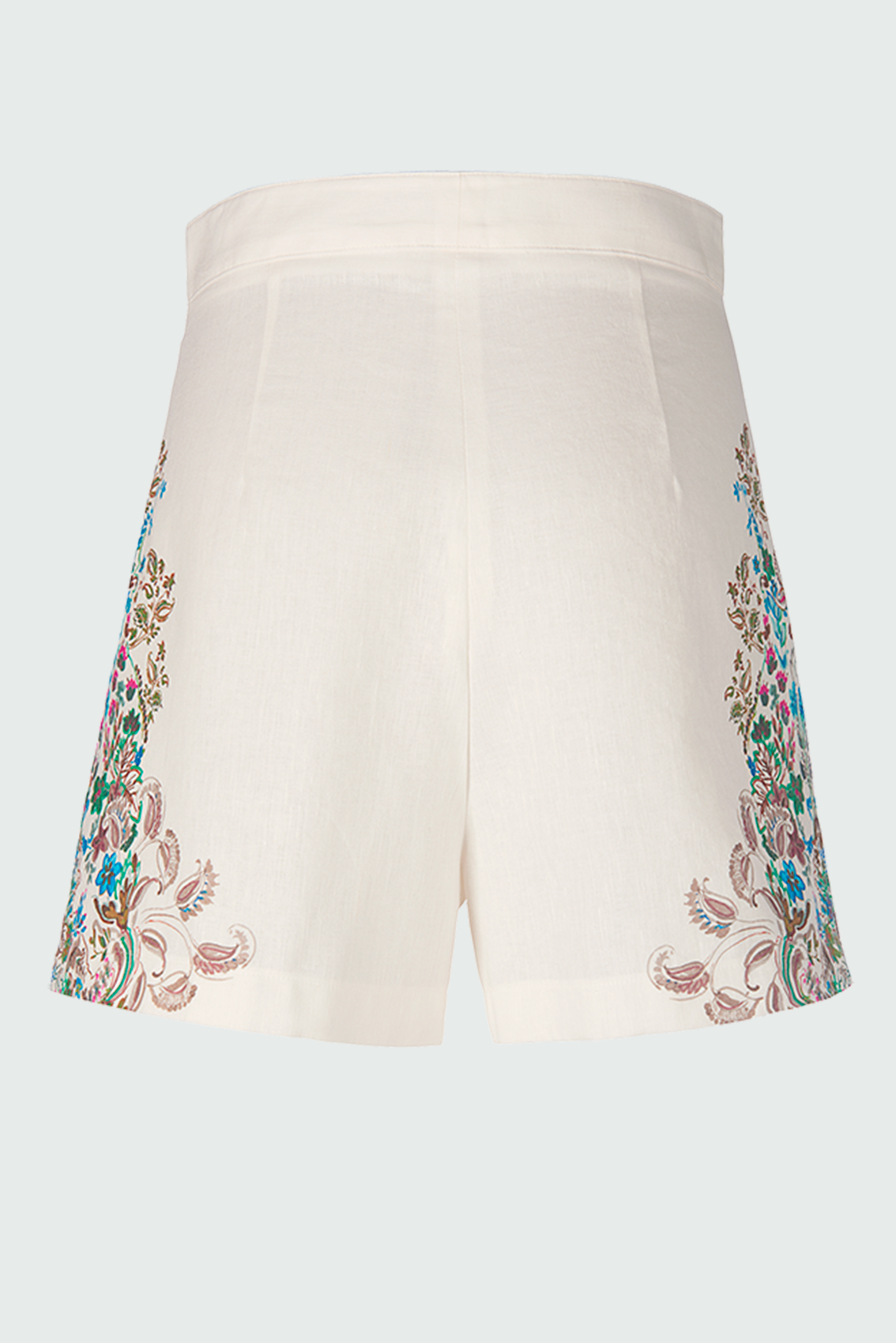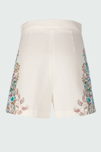 С красивым прованским принтом, искусно размещенным по бокам модных шорт, создается ощущение лета. Высококачественная хлопково-льняная ткань обладает естественным очарованием, а тщательно скрытая застежка придает шортам нотку элегантности. Великолепная ключевая деталь, которая привнесет женственный шик в любой гардероб.
