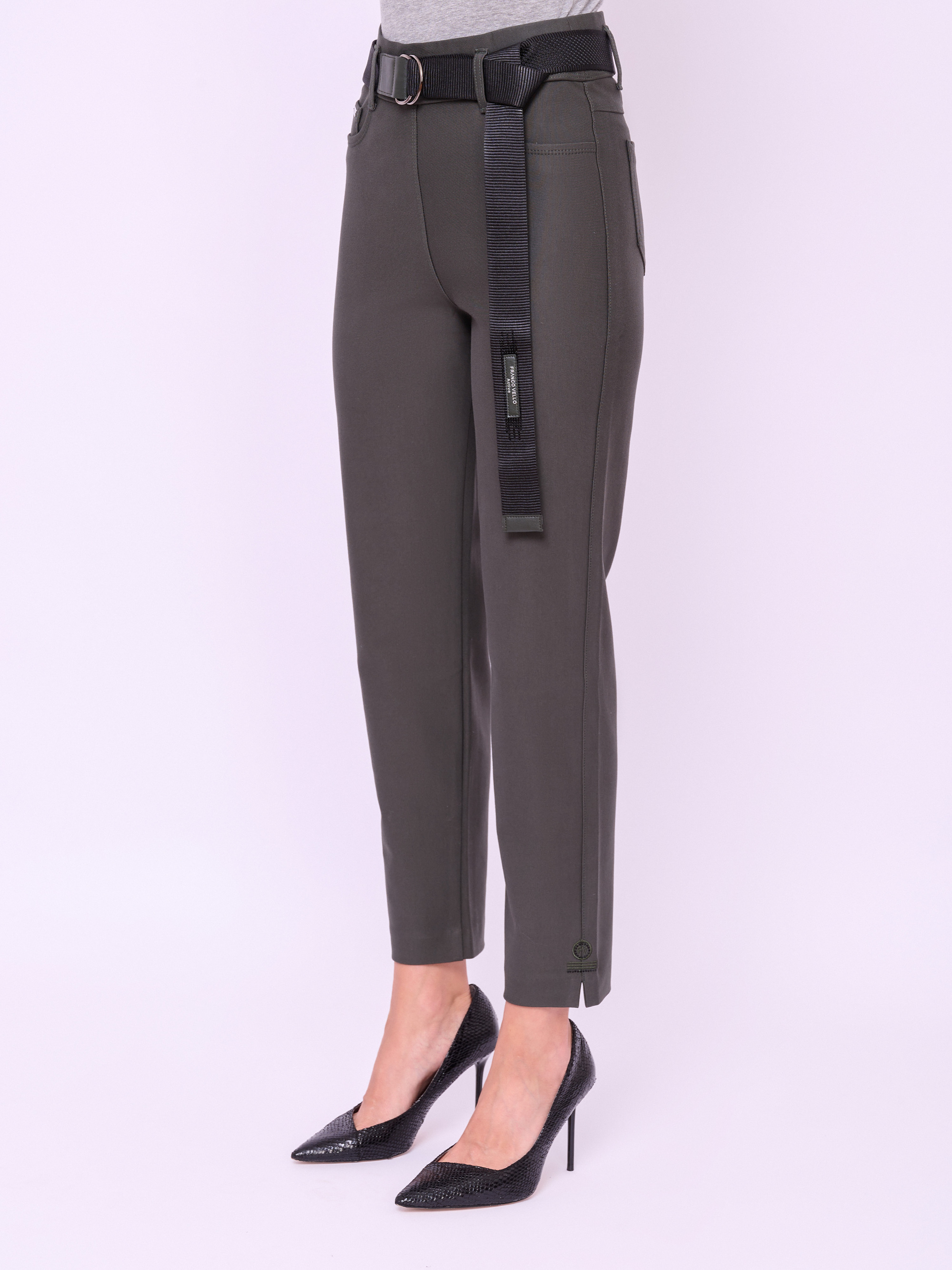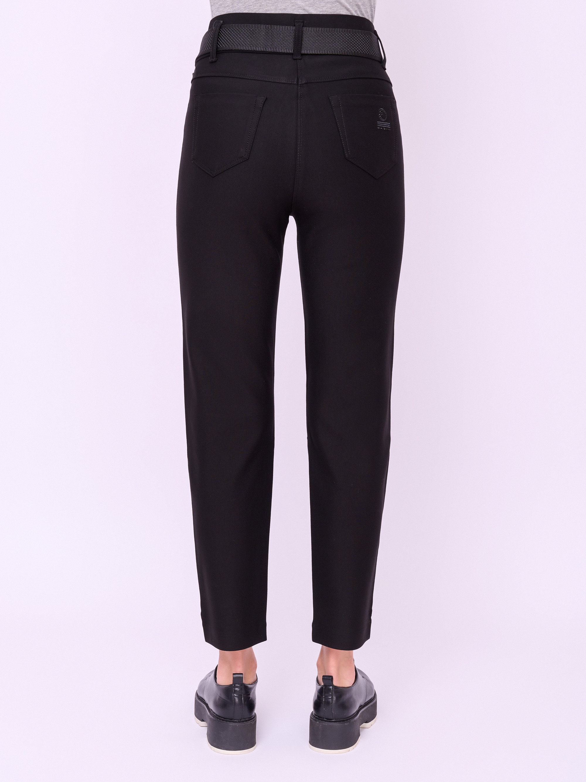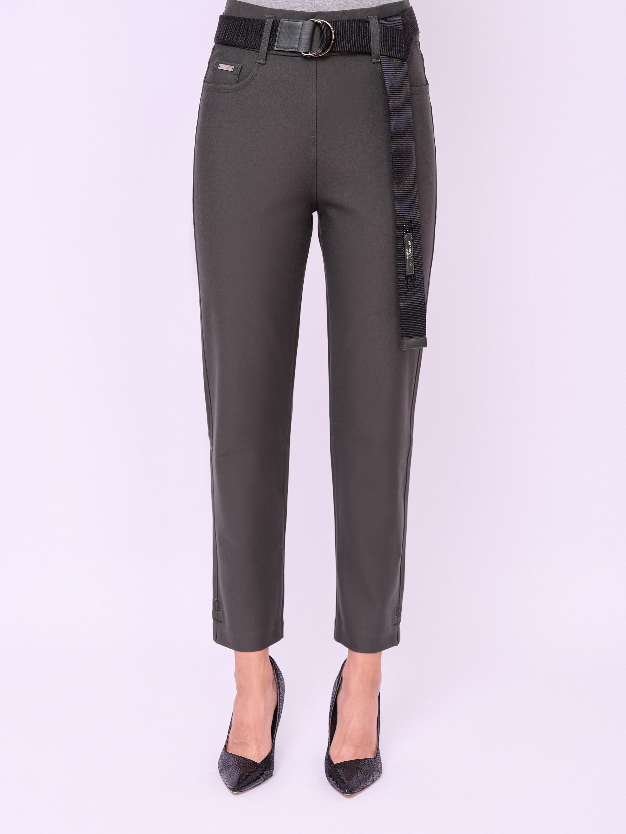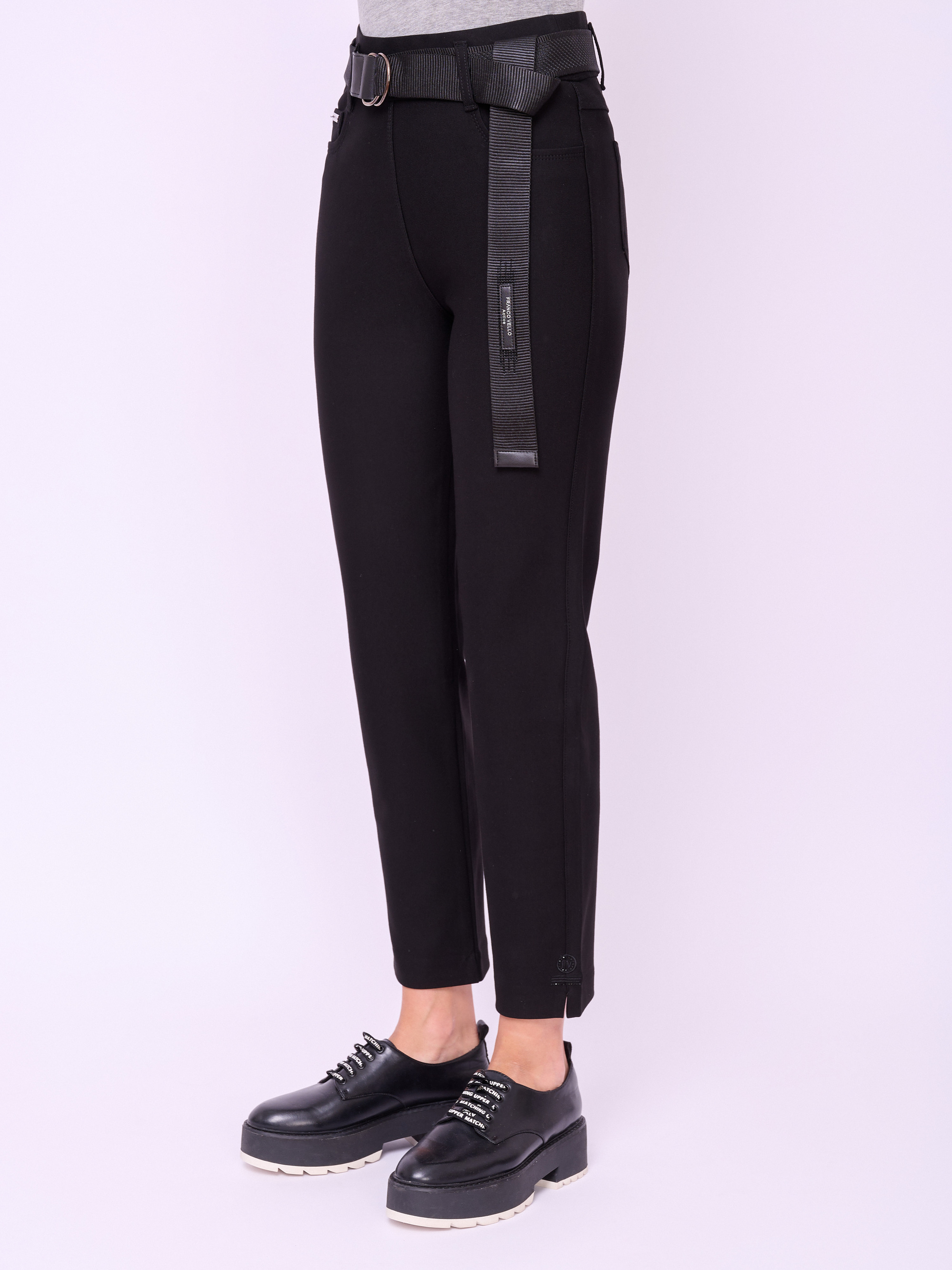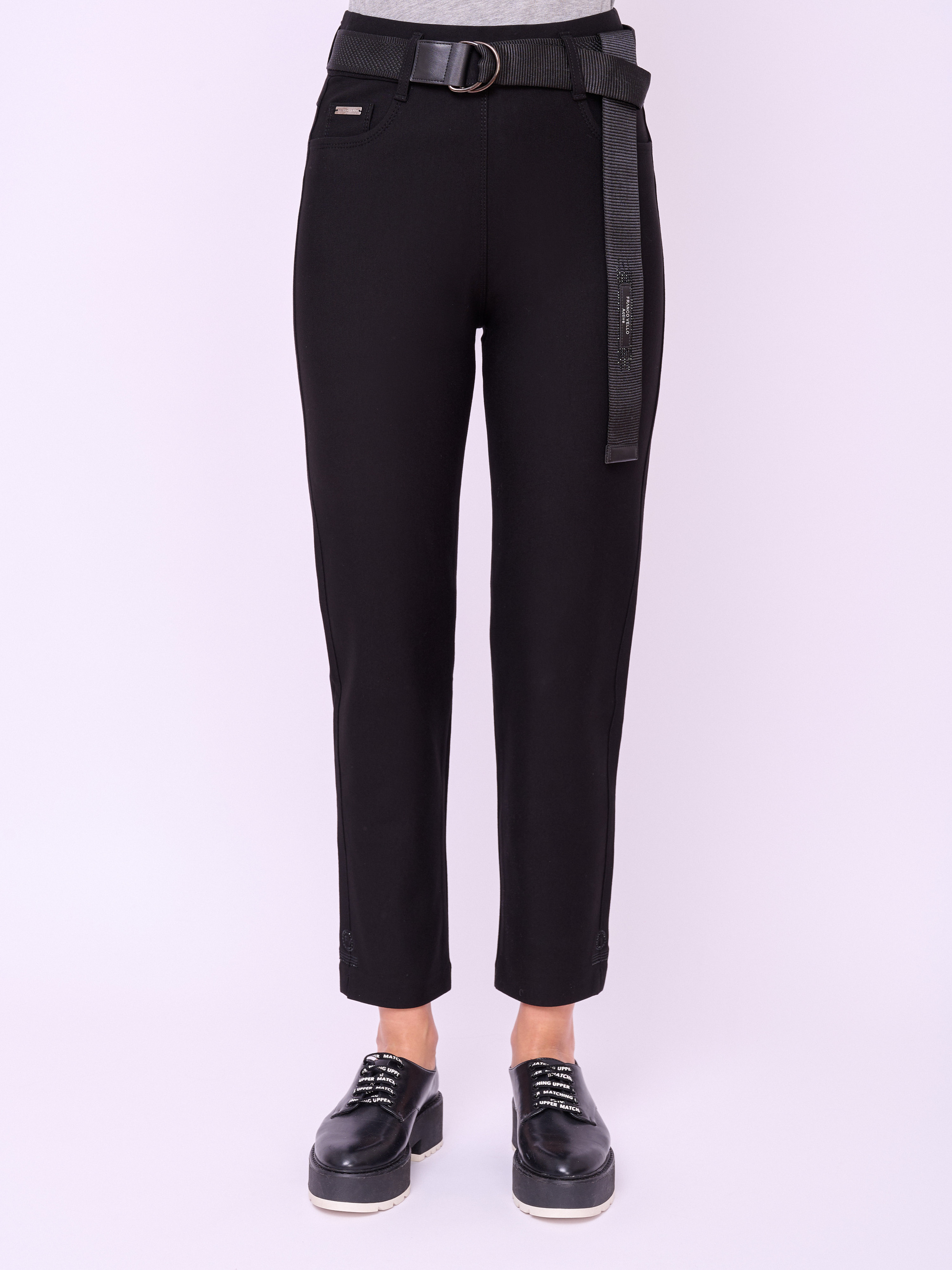 Детали: без застежки, без рисунка, без карманов, крой брючин зауженный, посадка средняя, боковые разерзы, вышивка со стразами, текстильный ремень. Длина брючин: 69 см.