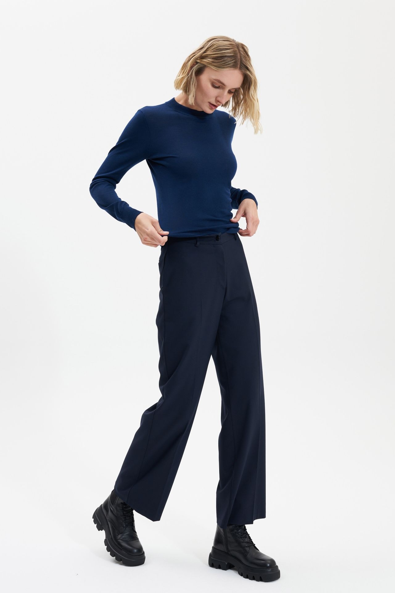 Широкие брюки с карманами в боковых швах. Декоративные карманы сзади. Длина по внутренней стороне: 107 см.
