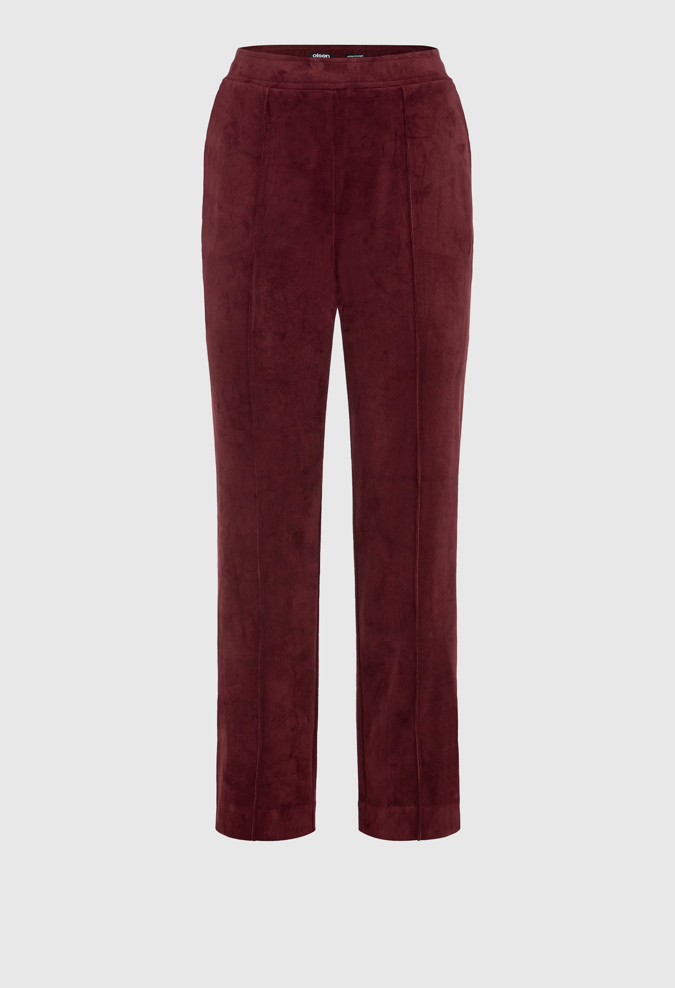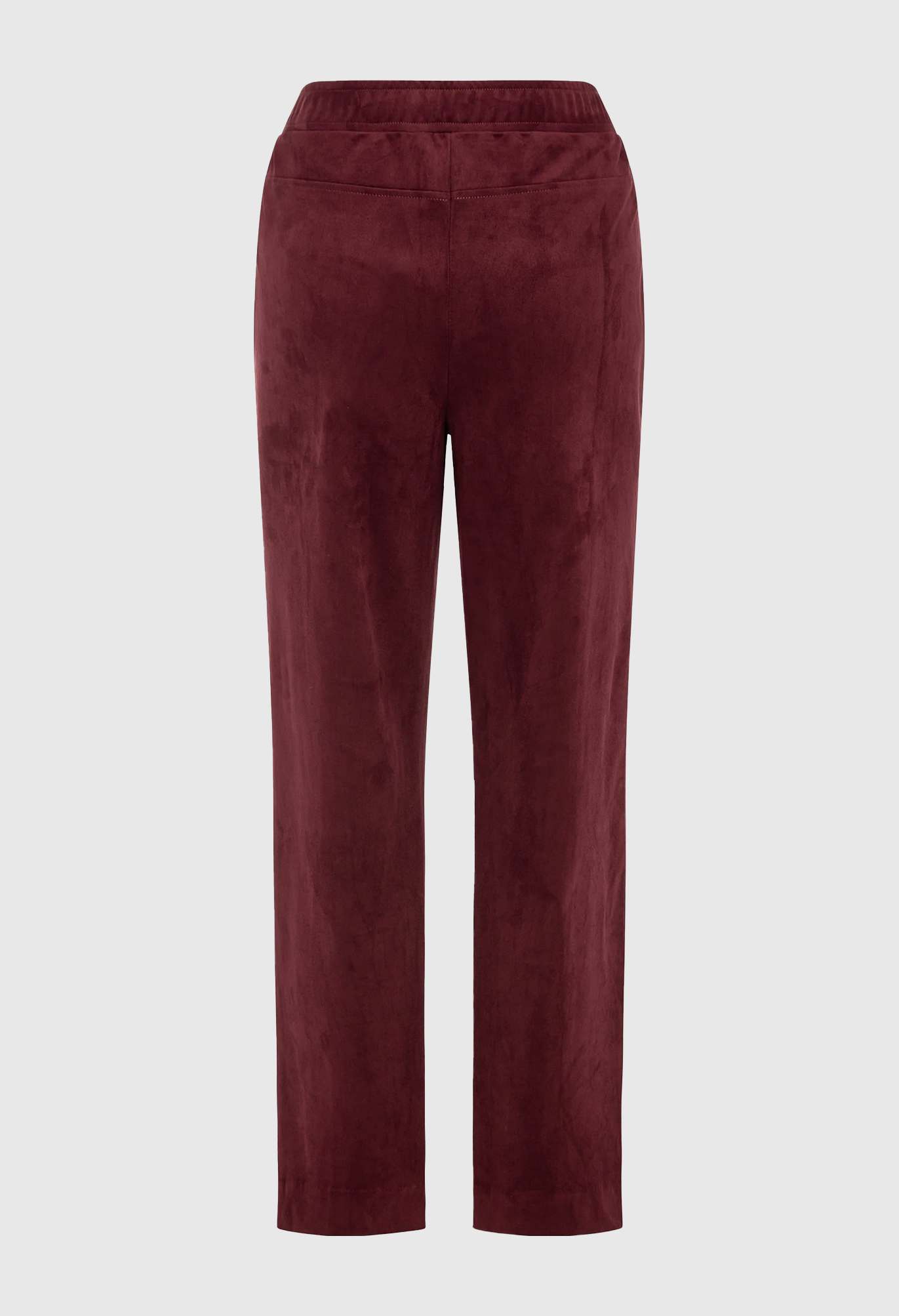Мягкая искусственная замша очень удобна благодаря своей эластичной ткани и создает ощущение богатства и роскоши. Плоский передний эластичный пояс на застежке с прорезными карманами и центральными швами передних штанин для элегантного внешнего вида. Они расслаблены в бедрах и сидят прямо на естественной линии талии, создавая эффект удлинения ног.