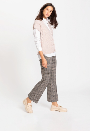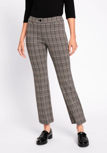 Брюки со средней посадкой из высококачественного трикотажа. Облегают фигуру, обеспечивает комфорт леггинсов и изысканный вид. Застежка на пуговицы спереди, петли для ремня и передние швы на штанинах придают модели безупречный вид.