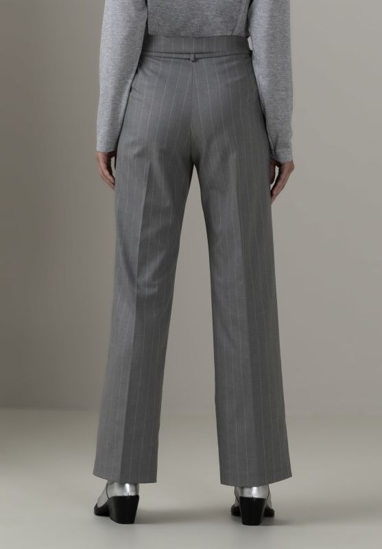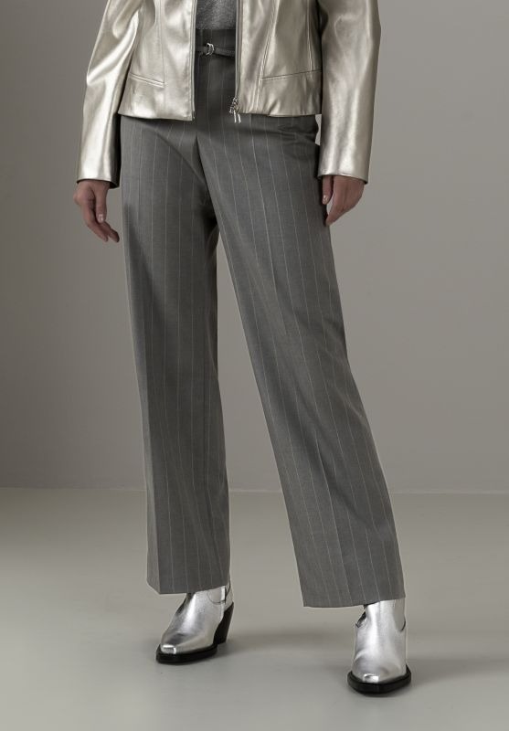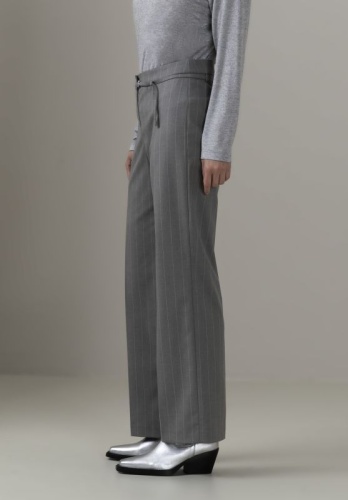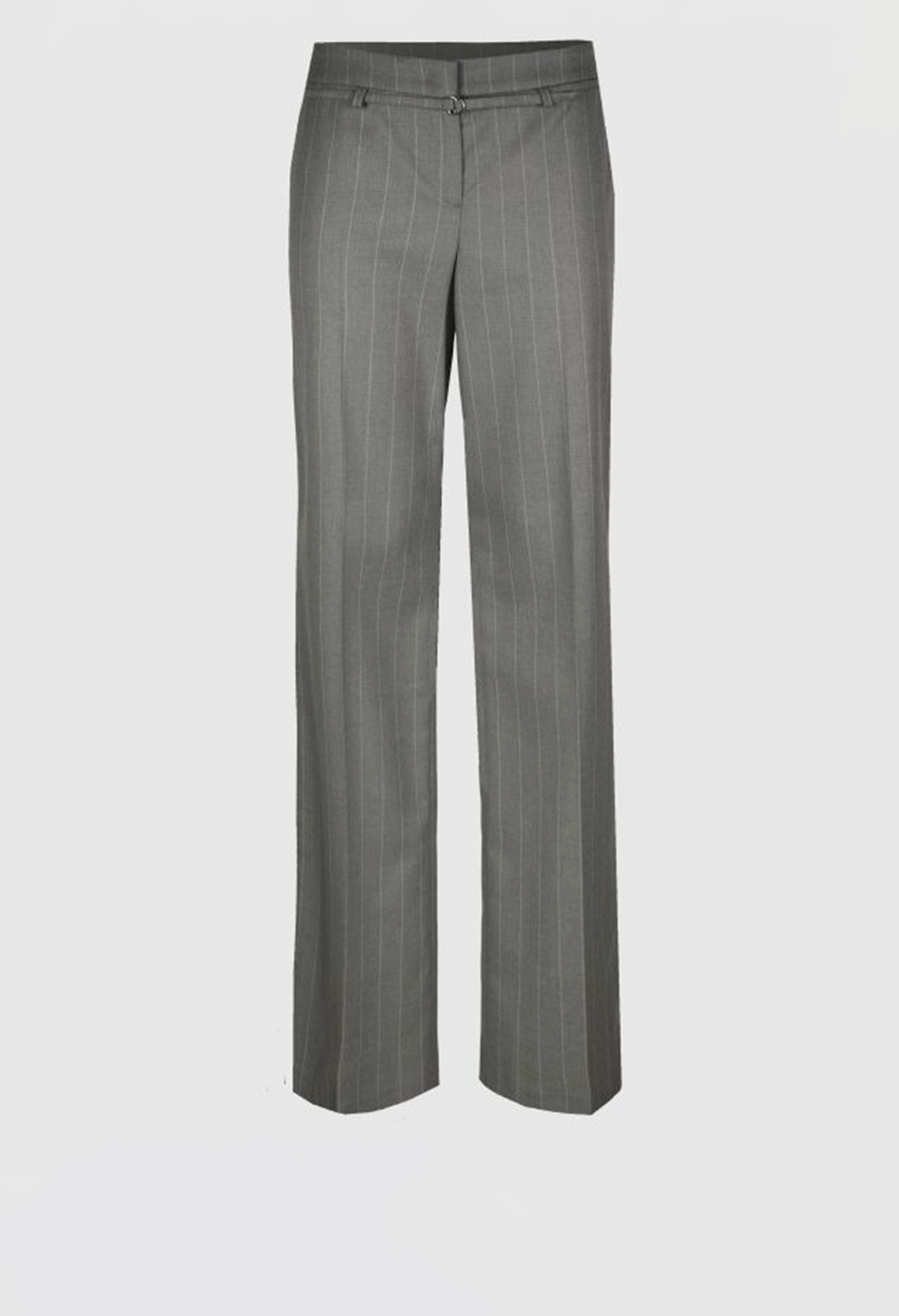 Брюки стрейч с небольшим тканевым поясом. Высококачественная смесь материалов с эластаном. С фигурным поясом и застежкой на крючок и пуговицу. Прямой, длинный крой с запрессованными складками. Длина около 82 см, ширина по низу около 50 см.