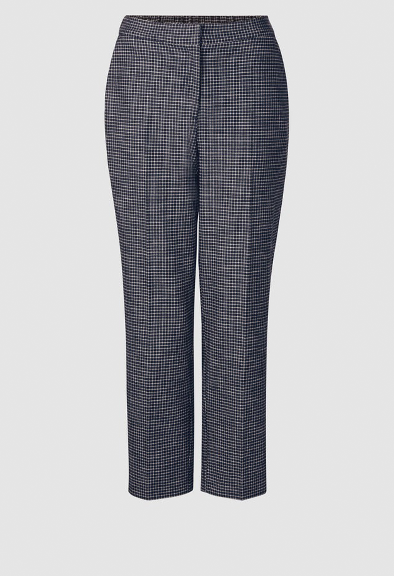 Брюки из вискозы классического кроя с клетчатым узором. Молния, крючки и эластичная вставка на поясе сзади. Длина для размера 42: 70 см.