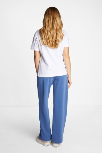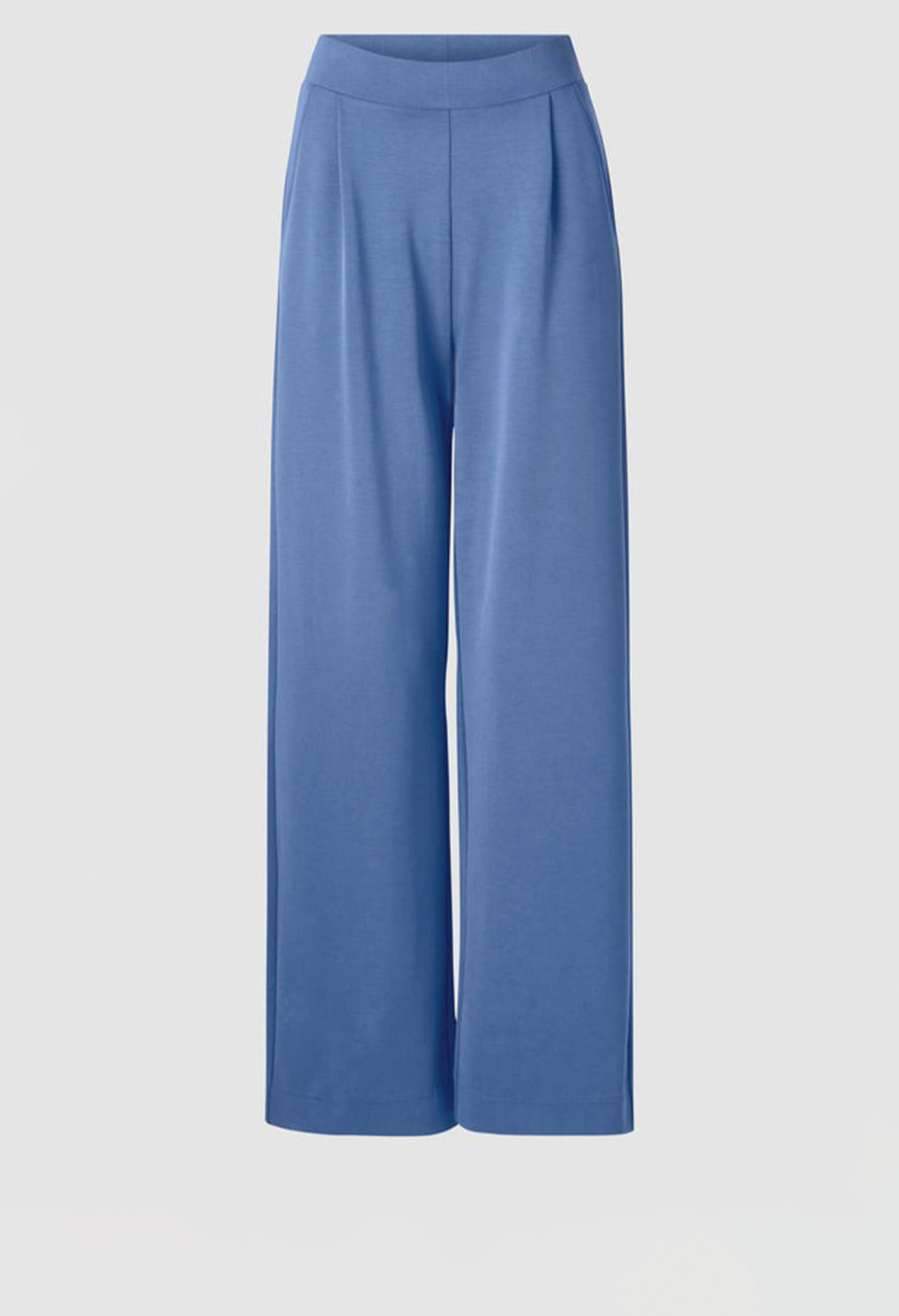 Характерной особенностью этих брюк является приятная широкая штанина свободного кроя. Эластичный пояс, боковые карманы и эластан подчеркивают комфорт при ношении. Длина для размера 42: 80 см.
