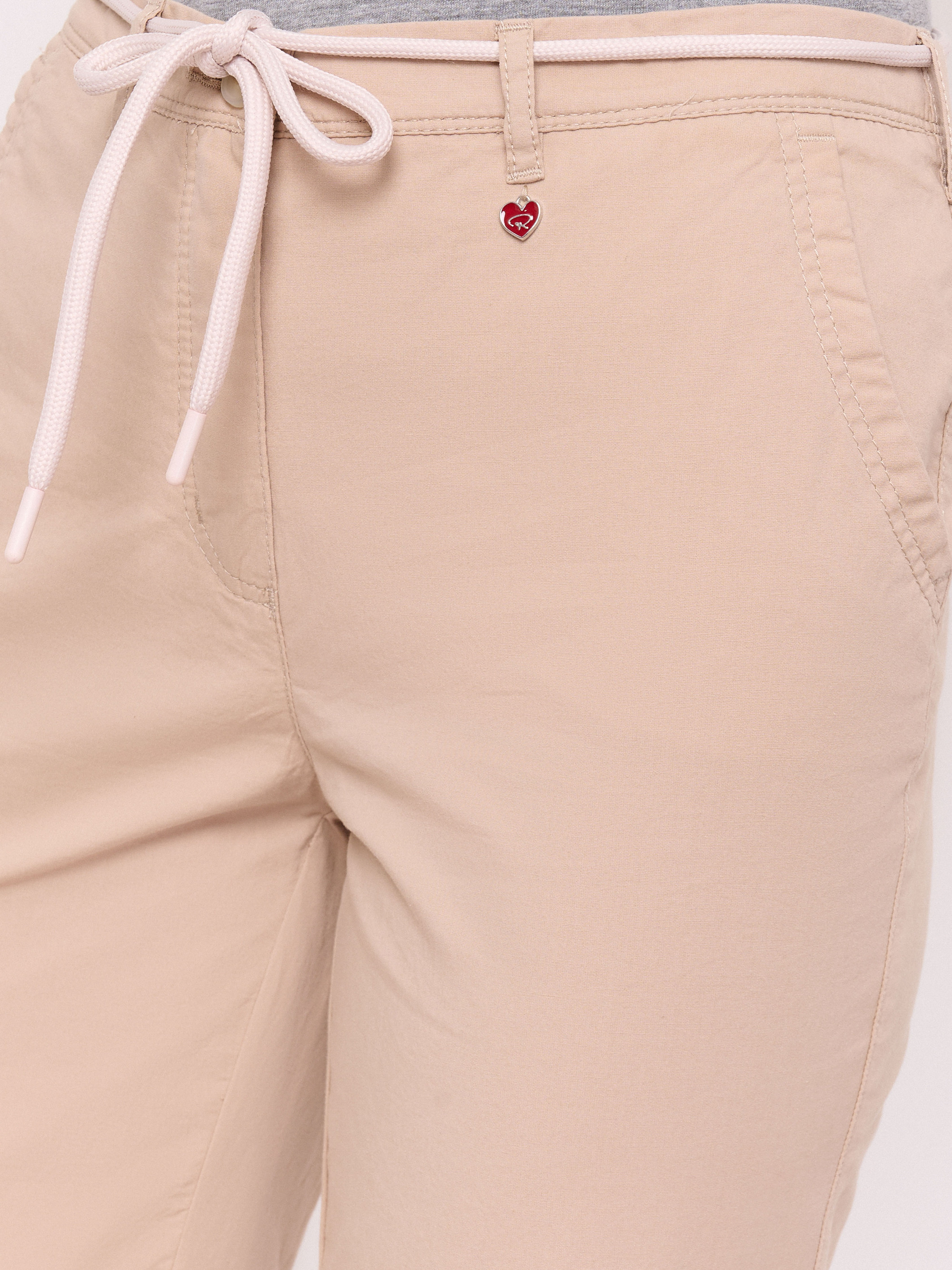 Детали: застежка молния, без рисунка, карманы косые, крой брючин зауженный, посадка средняя, пояс-шнур. Длина брючин: 71 см.