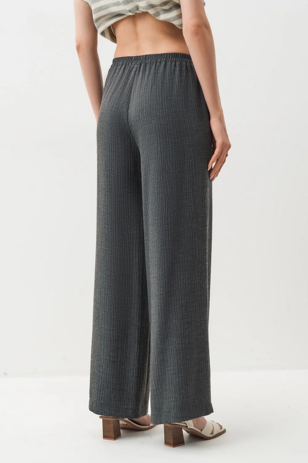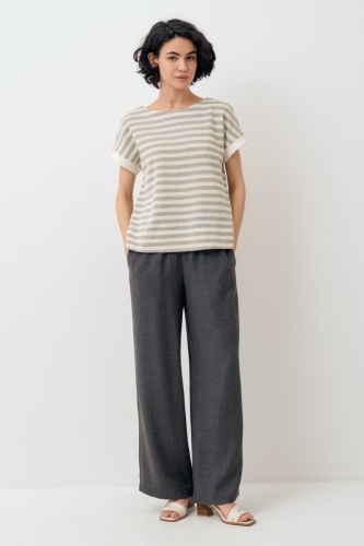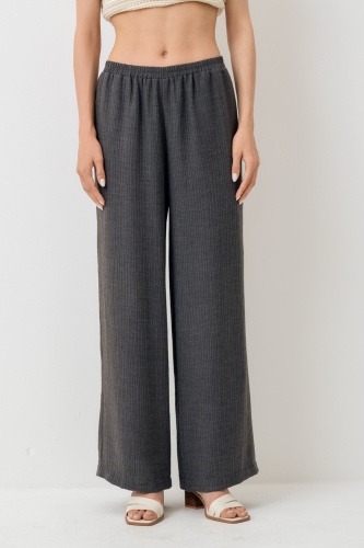 Брюки прямые широкие. Пояс притачной, собран на широкую резинку. Карман в боковом шве.
