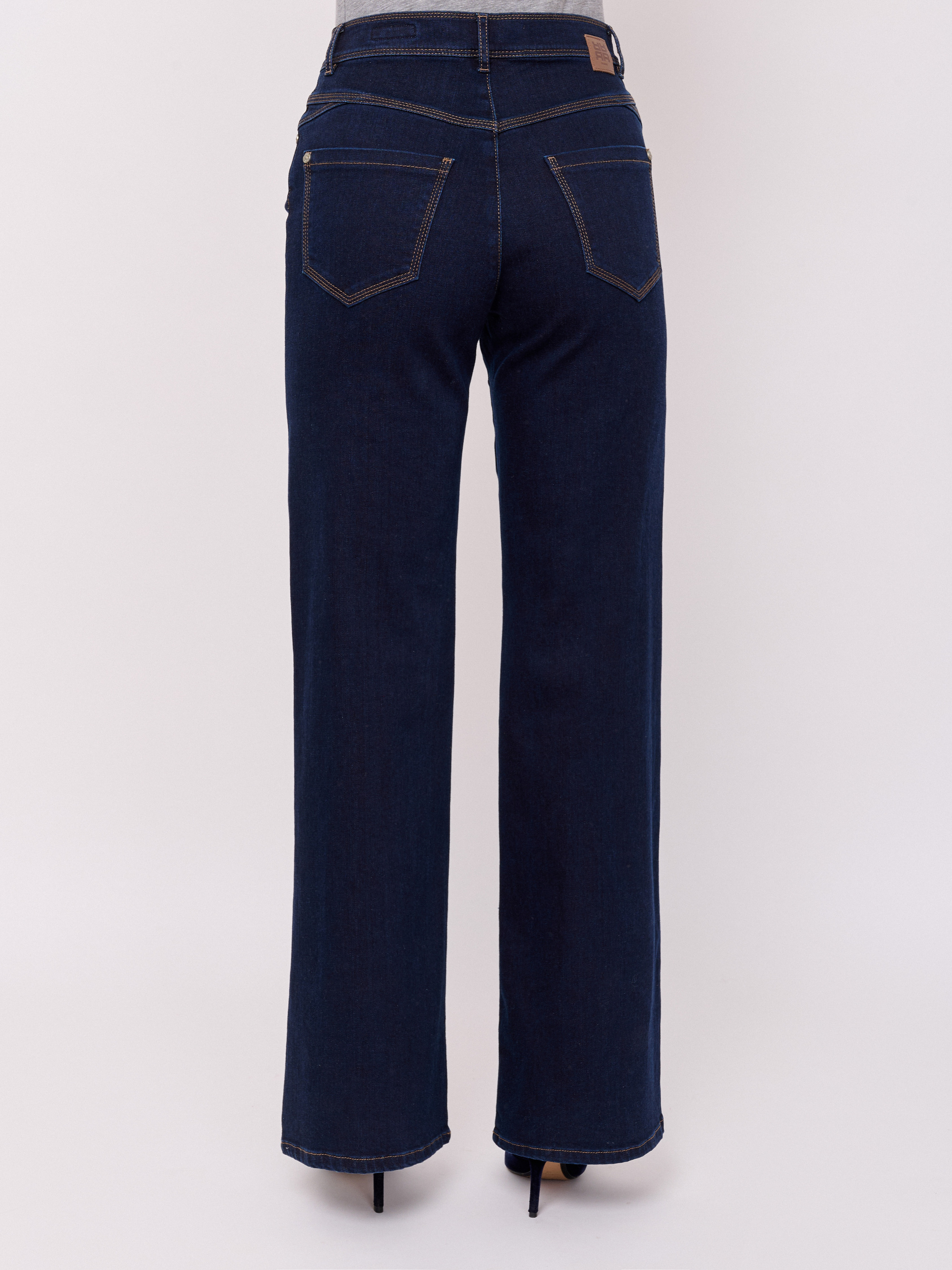 Детали: плотный деним, застежка молния, без рисунка, карманы с отрезным бочком, кройбрючин широкий клеш wide leg, посадка средняя.
