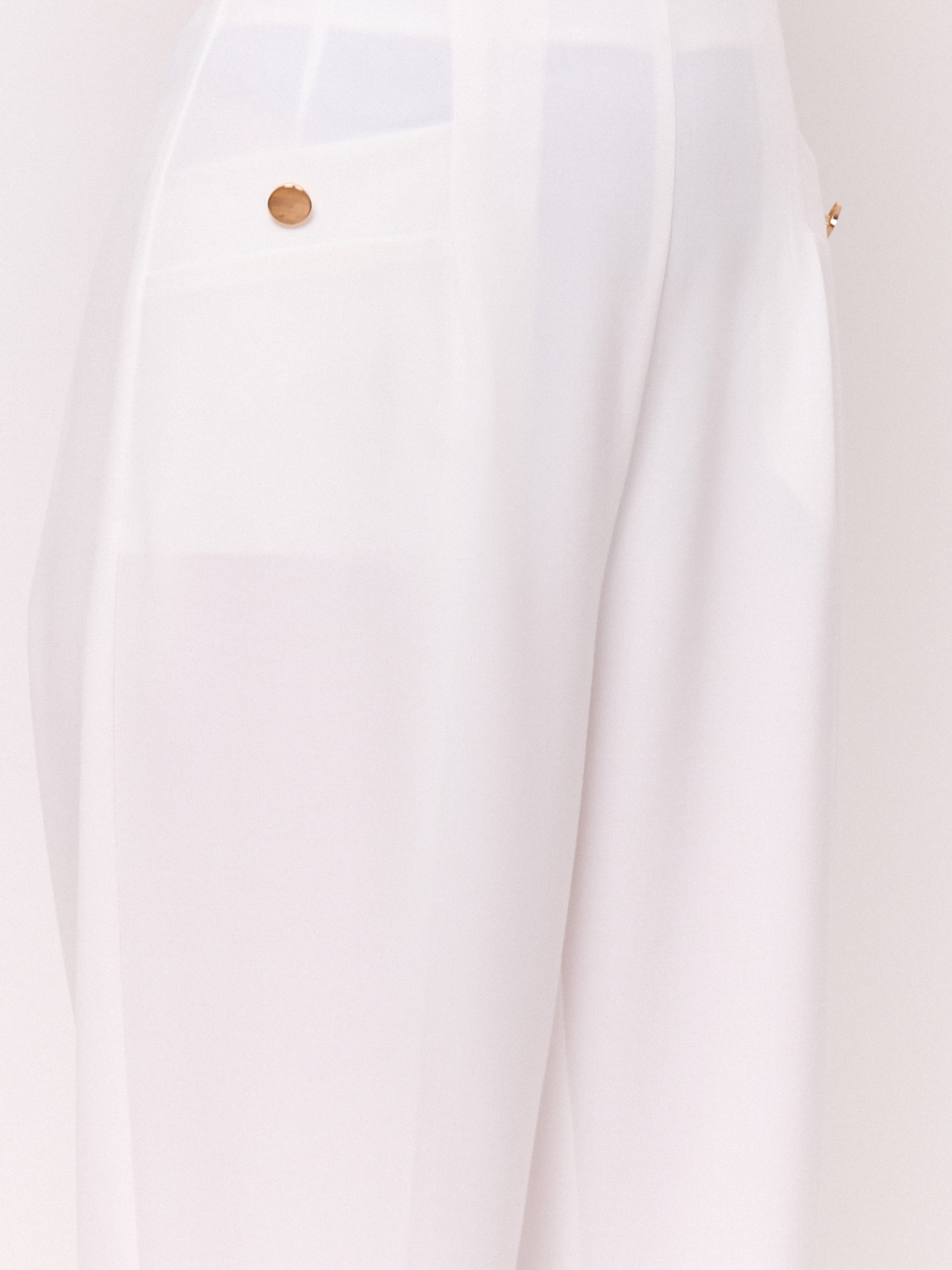 Детали: костюмные брюки, застежка молния, без рисунка, карманы с отрезным бочком, крой брючин зауженный, посадка средняя. Длина брючин: 77 см. Идеально с жакетом UNQ (арт.24120010267)