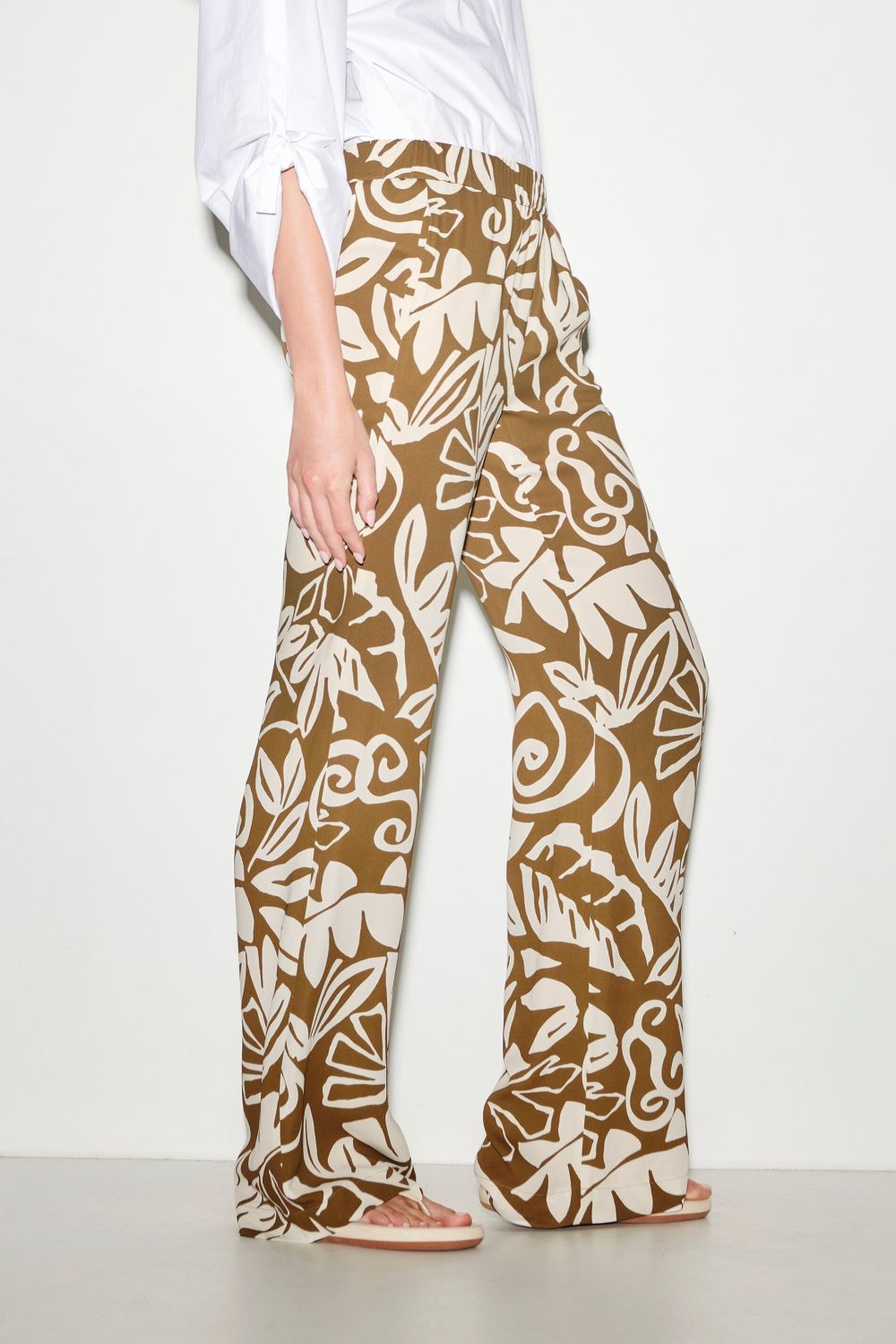 Расклешенные брюки Bootcut из легкой струящейся вискозы с эксклюзивным абстрактным принтом в виде листьев. Брюки имеют два боковых кармана и два декоративных кармана с клапанами.