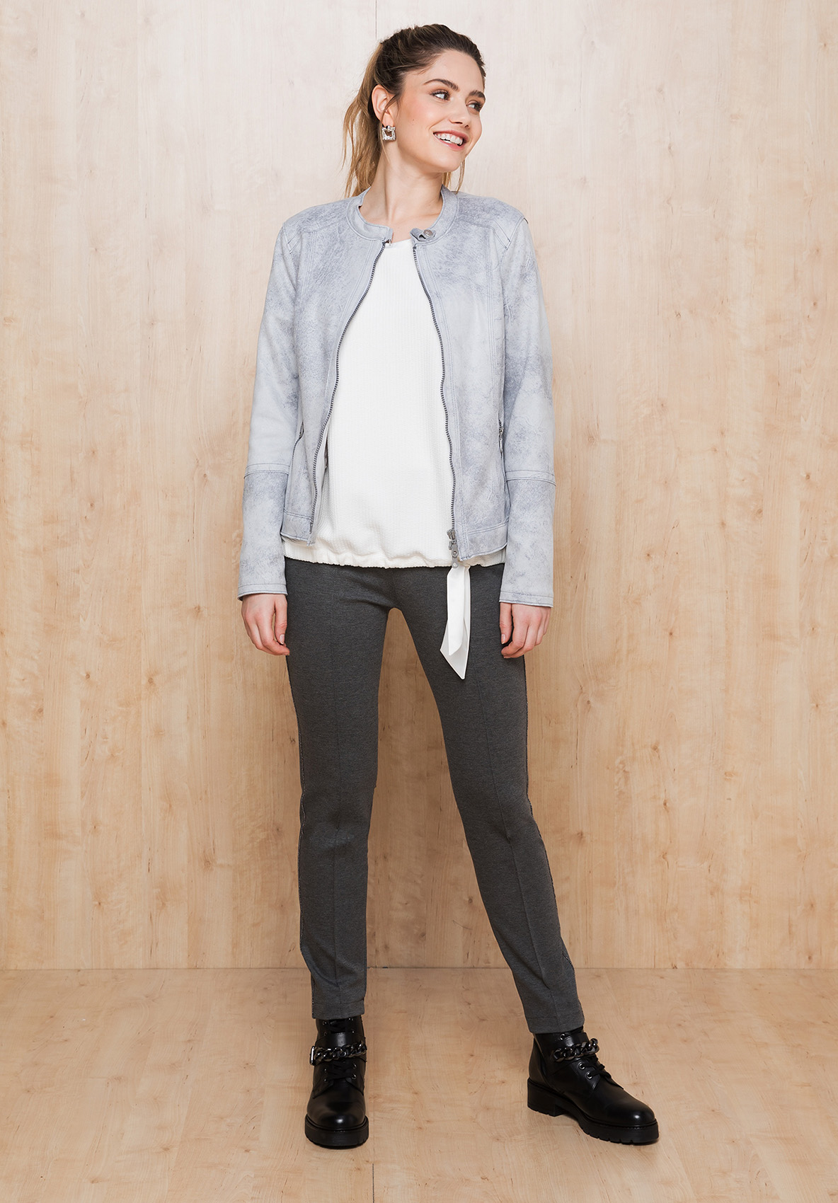 Стильные и суперкомфортные джеггинсы средней посадки. Эта модель привлекает своим мягким эластичным вискозным материалом и модными деталями. Блестящая тесьма сбоку придает модели элегантность. Эластичный пояс позволяет легко надеть брюки и обеспечивает удобство в ношении.
