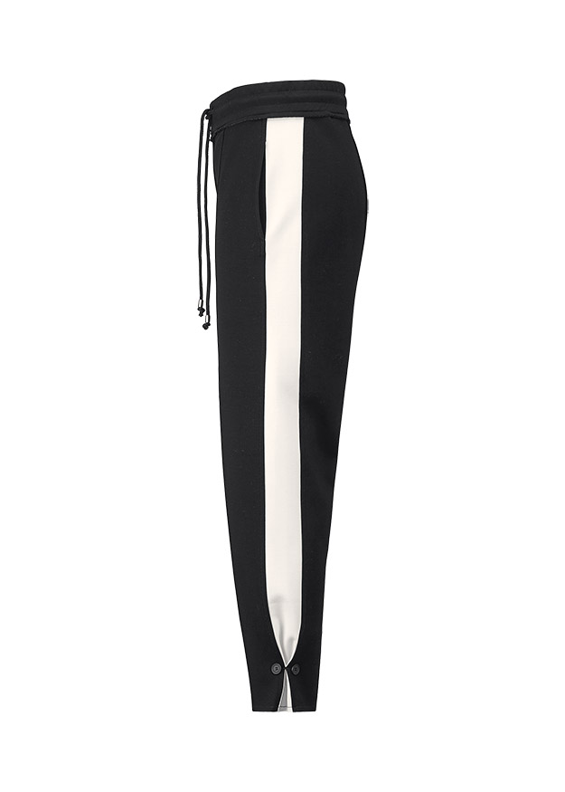 Модные брюки в стиле спортивных штанов. Полоски подчеркивают стройные линии и свободный крой по щиколотку. Мягкая, но прочная ткань и эластичный пояс с кулиской обеспечивают комфорт в любое время.