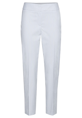 Эластичные брюки Siena с трендовым принтом в полоску. Брюки отлично подходят для стильного образа. Эластичный материал очень удобен в ношении. Данная модель имеет силуэт slim, среднюю посадку, длину 7/8, высокий пояс со скрытой застежкой и небольшой карман под поясом. Брюки станут идеальной модной парой как для делового, так и для повседневного образа. • брюки с принтом в полоску • высококачественная смесь вискозы и эластана • застежка-молния, небольшие разрезы по бокам • средняя посадка, силуэт slim • укороченные брюки 7/8, длина около 68 см