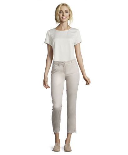Укороченные брюки обращают на себя внимание. Универсальная средняя посадка, прямой крой. Небольшие разрезы по низу брючин. Декор стразами в области бедер придяет образу нотку гламура. Приятный к телу материал из хлопковой смеси обеспечивает комфорт в ношении. В сочетании как с футболкой, так и с блузой эти брюки создают стильный современный образ.