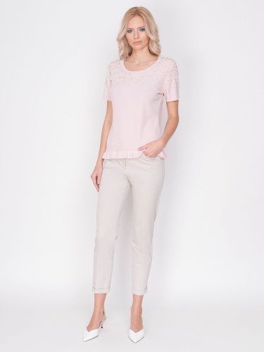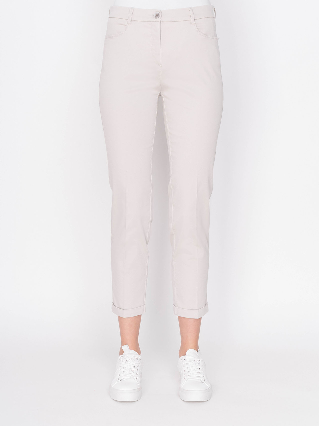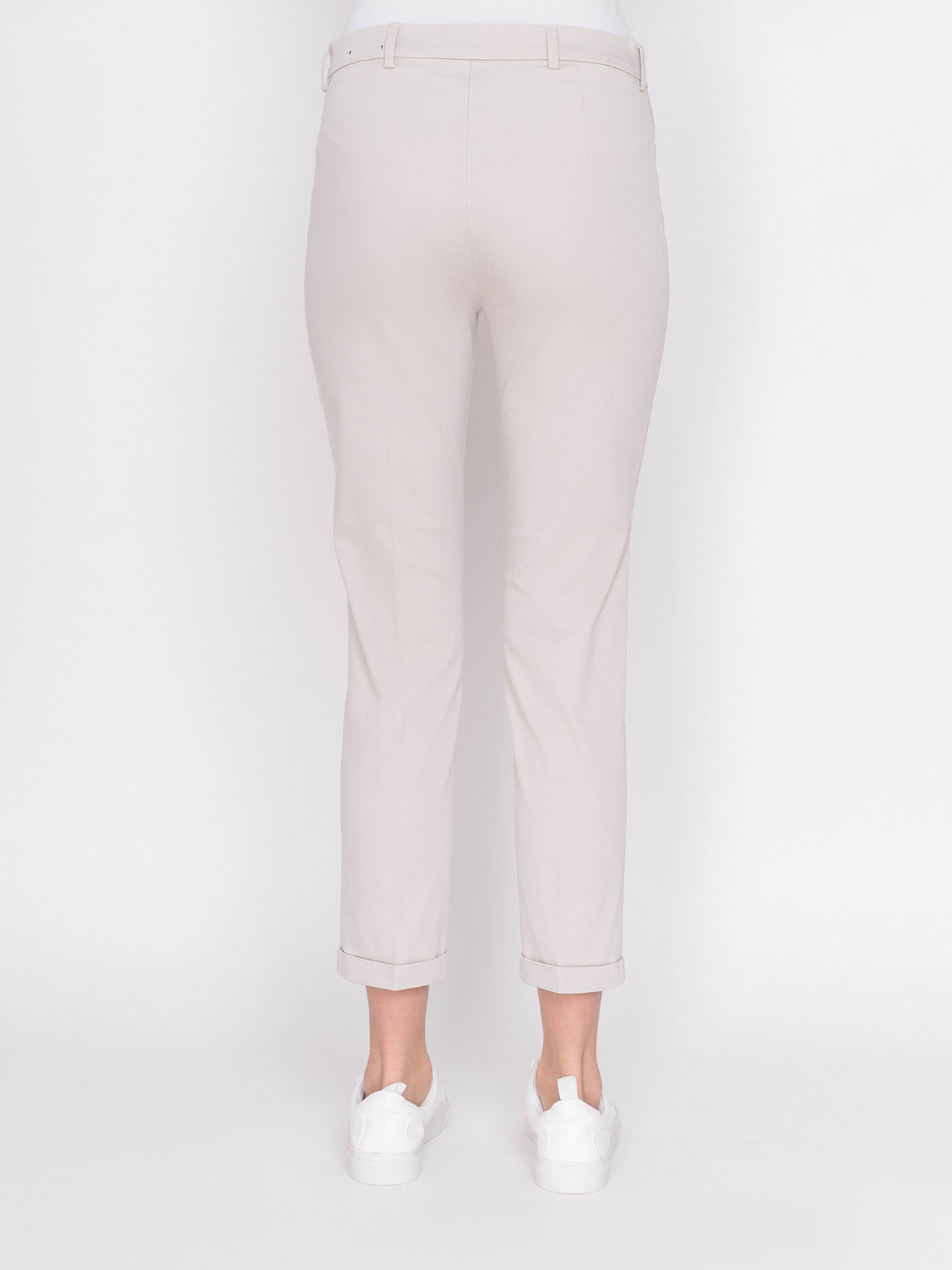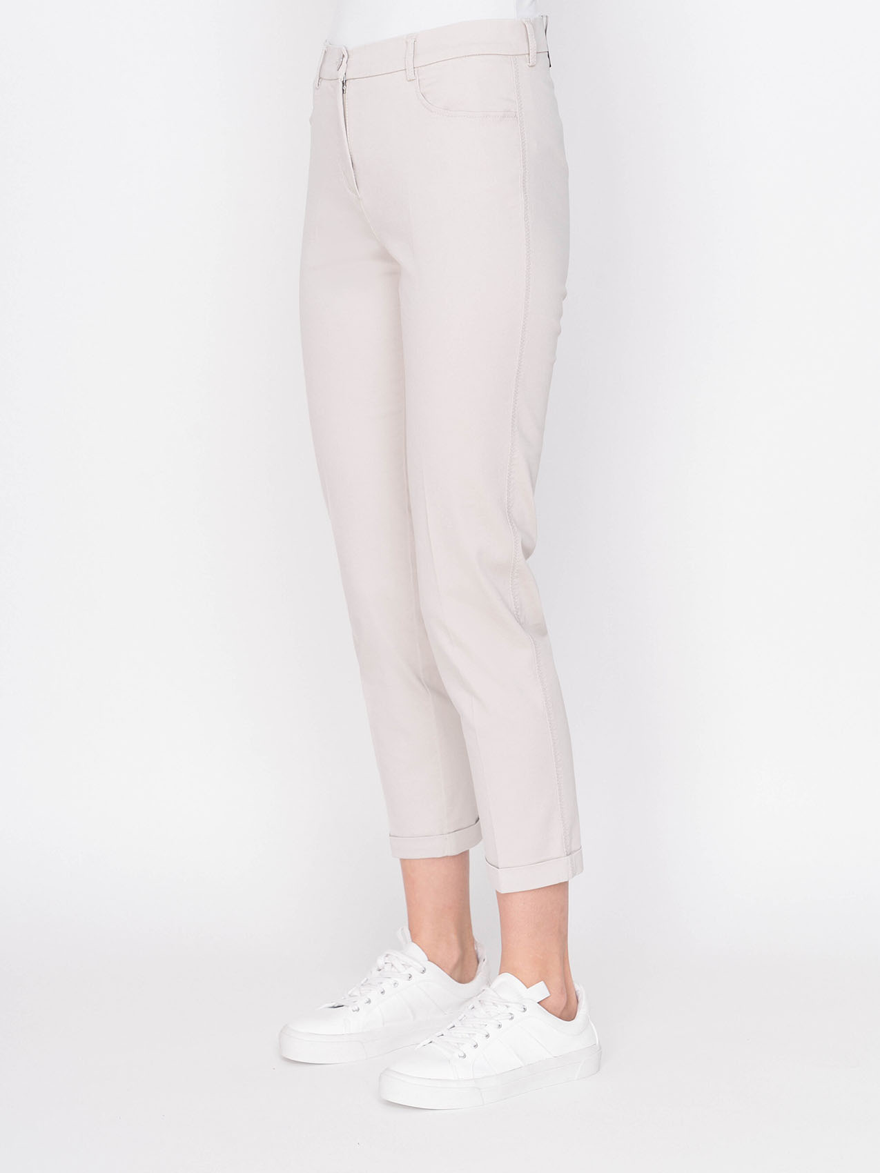Укороченные брюки с карманами. Светлый цвет, идеально подходящий для сезона весна-лето. Эта модель отлично смотрится как с классическими туфлями, так и со спортивной обувью.