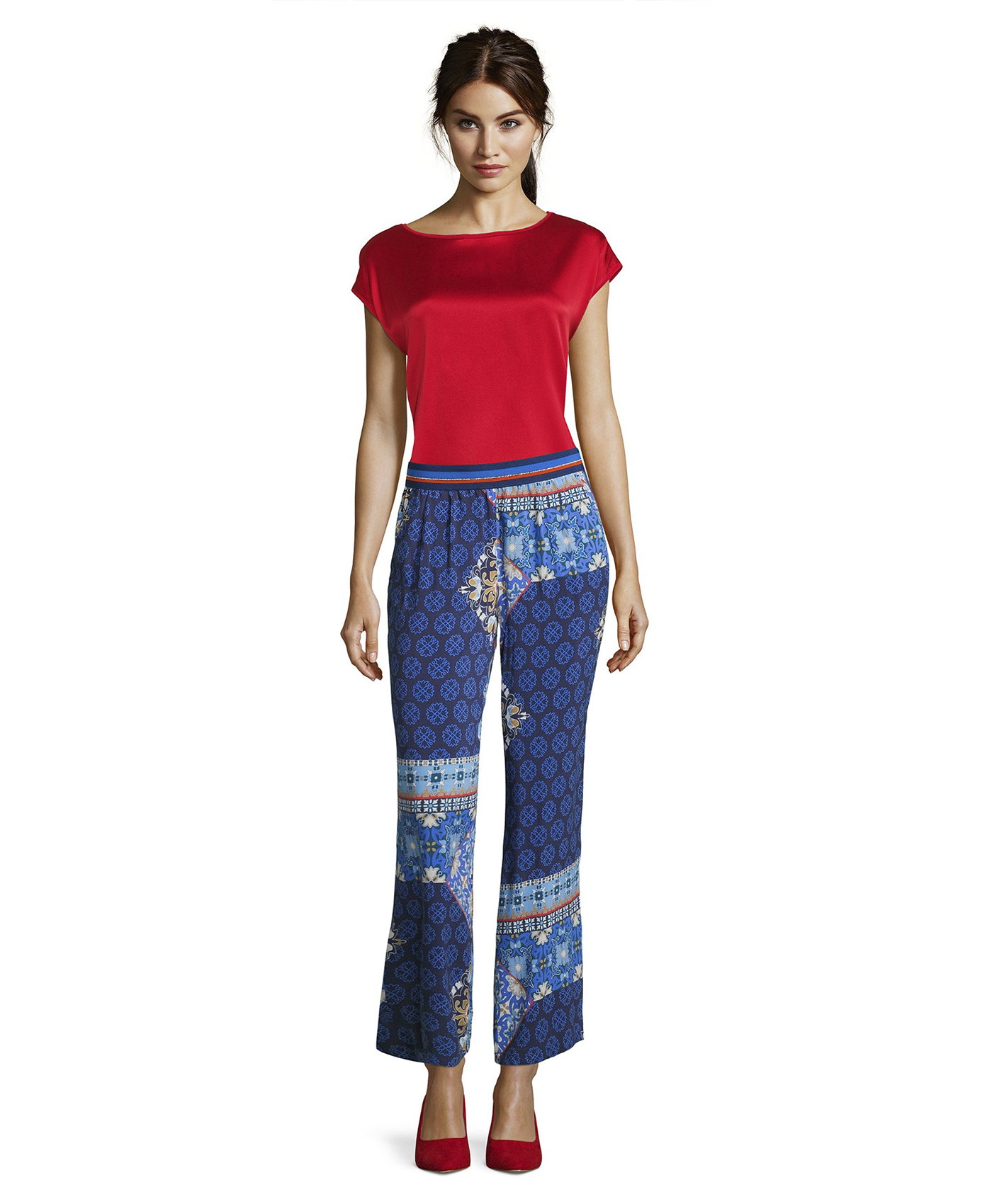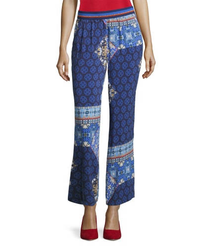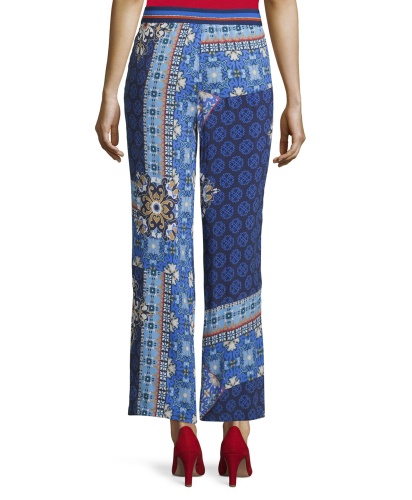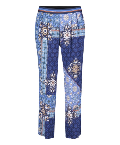 Клеш снова в моде! Брюки с трендовым этническим принтом. Эластичный пояс. Защипы на талии подчеркивают женственную фигуру. Вискозный материал приятен к телу и обеспечивает максимальный комфорт. В сочетании с однотонной футболкой или блузкой эти брюки создают яркий современный образ.