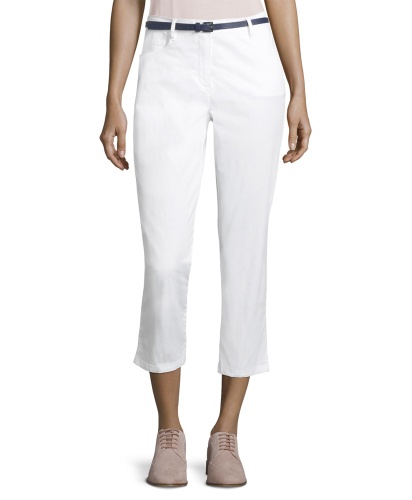Укороченные брюки слегка расклешенного кроя обращают на себя внимание. Универсальная средняя посадка. Небольшие разрезы снизу по боковым швам. Приятный к телу материал из хлопковой смеси обеспечивает комфорт в ношении. В сочетании как с футболкой, так и с блузой эти брюки создают стильный современный образ.