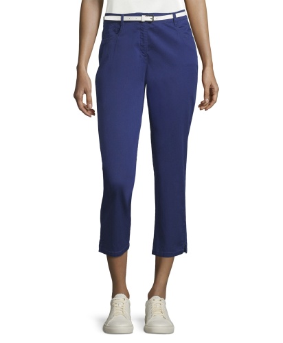 Укороченные брюки слегка расклешенного кроя обращают на себя внимание. Универсальная средняя посадка. Небольшие разрезы снизу по боковым швам. Приятный к телу материал из хлопковой смеси обеспечивает комфорт в ношении. В сочетании как с футболкой, так и с блузой эти брюки создают стильный современный образ.