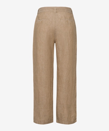 Укороченные брюки свободного силуэта выполнены из 100%-го льна. Комфортная высокая посадка. В комплекте идет пояс из основного материалв изделия. Врезные карманы с листочками сзади. Брюки идеально подойдут для жаркой летней погоды, обеспечат комфортную терморегуляцию.