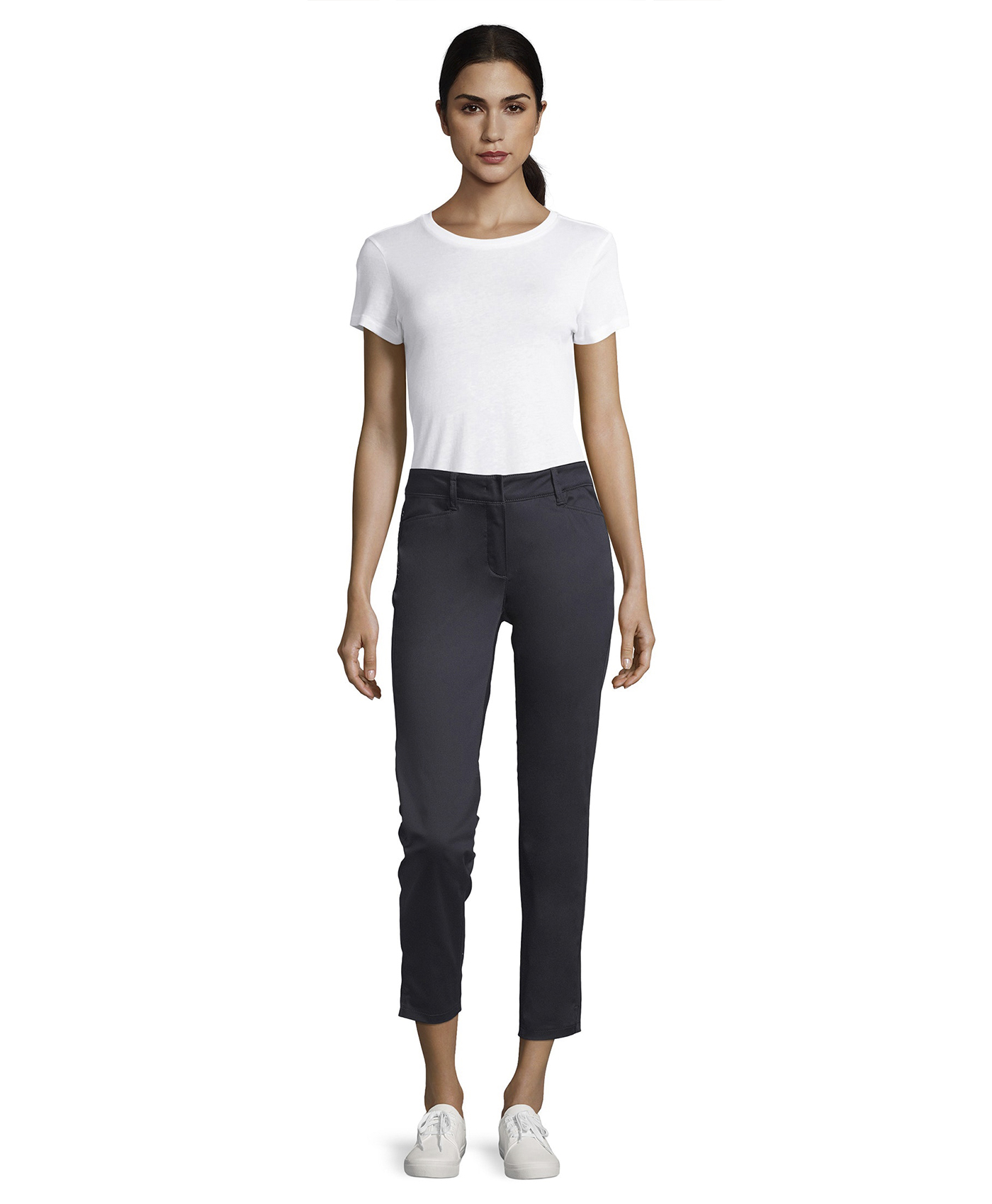 Укороченные брюки обращают на себя внимание. Универсальная средняя посадка, прямой крой. Небольшие разрезы по низу брючин. Декор стразами в области бедер придяет образу нотку гламура. Приятный к телу материал из хлопковой смеси обеспечивает комфорт в ношении. В сочетании как с футболкой, так и с блузой эти брюки создают стильный современный образ.
