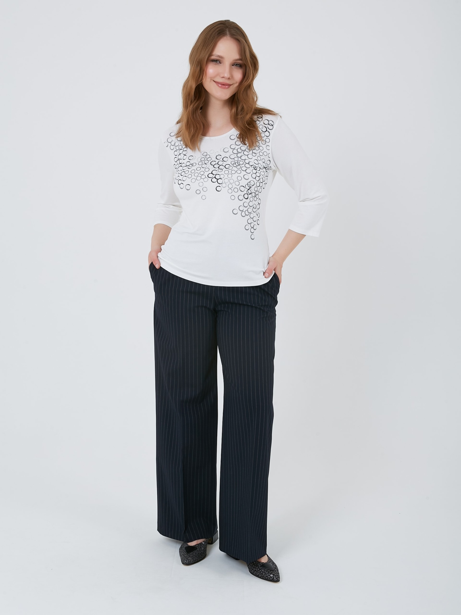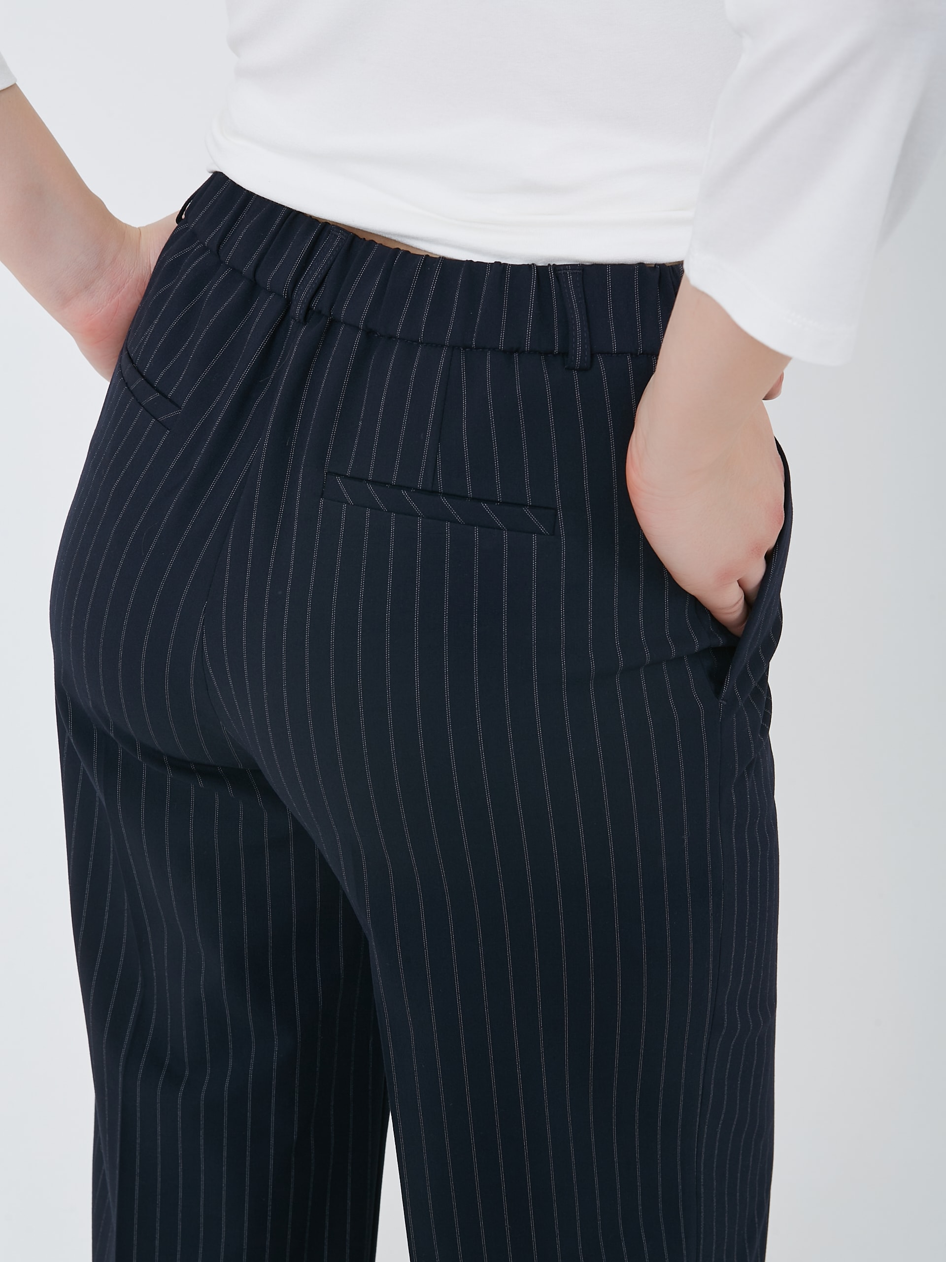 Прямые брюки тёмно-синиего цвета с пунктирной полоской "Страйп". Осень-Зима'25/26. Капсула "Лиловый шар"