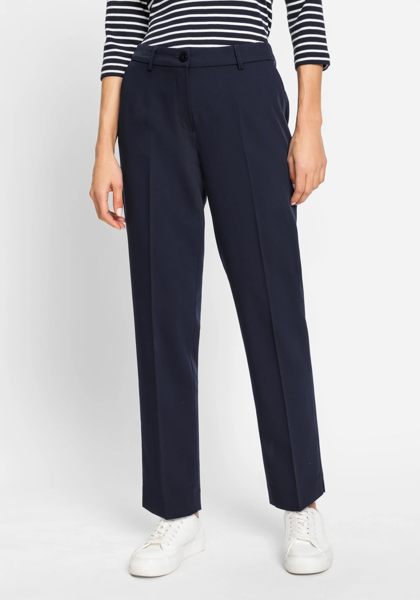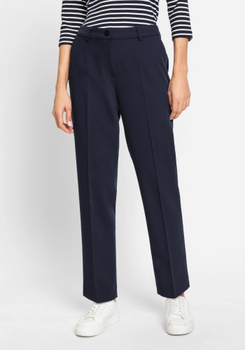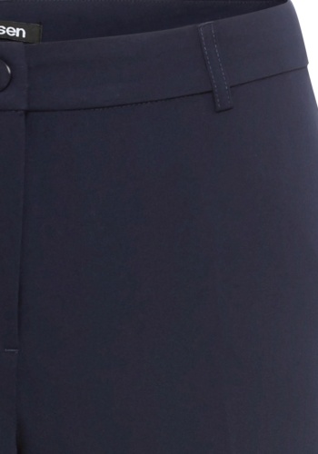 Офисные брюки укороченной длины из качественной ткани с гладкой поверхностью. Разработаны с боковыми прорезными карманами, задними прорезными карманами и шлевками для ремня. Короткие разрезы на подоле, заутюженная складка по центру передней части штанины и немного эластана для дополнительной эластичности добавляют стильные детали этого универсального базового элемента гардероба. Эти брюки идеально сочетаются с соответствующим блейзером для создания скоординированного ансамбля. Крой свободный в области бедер и ягодиц, модель сидит немного ниже естественной линии талии для комфортной носки.