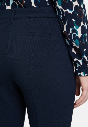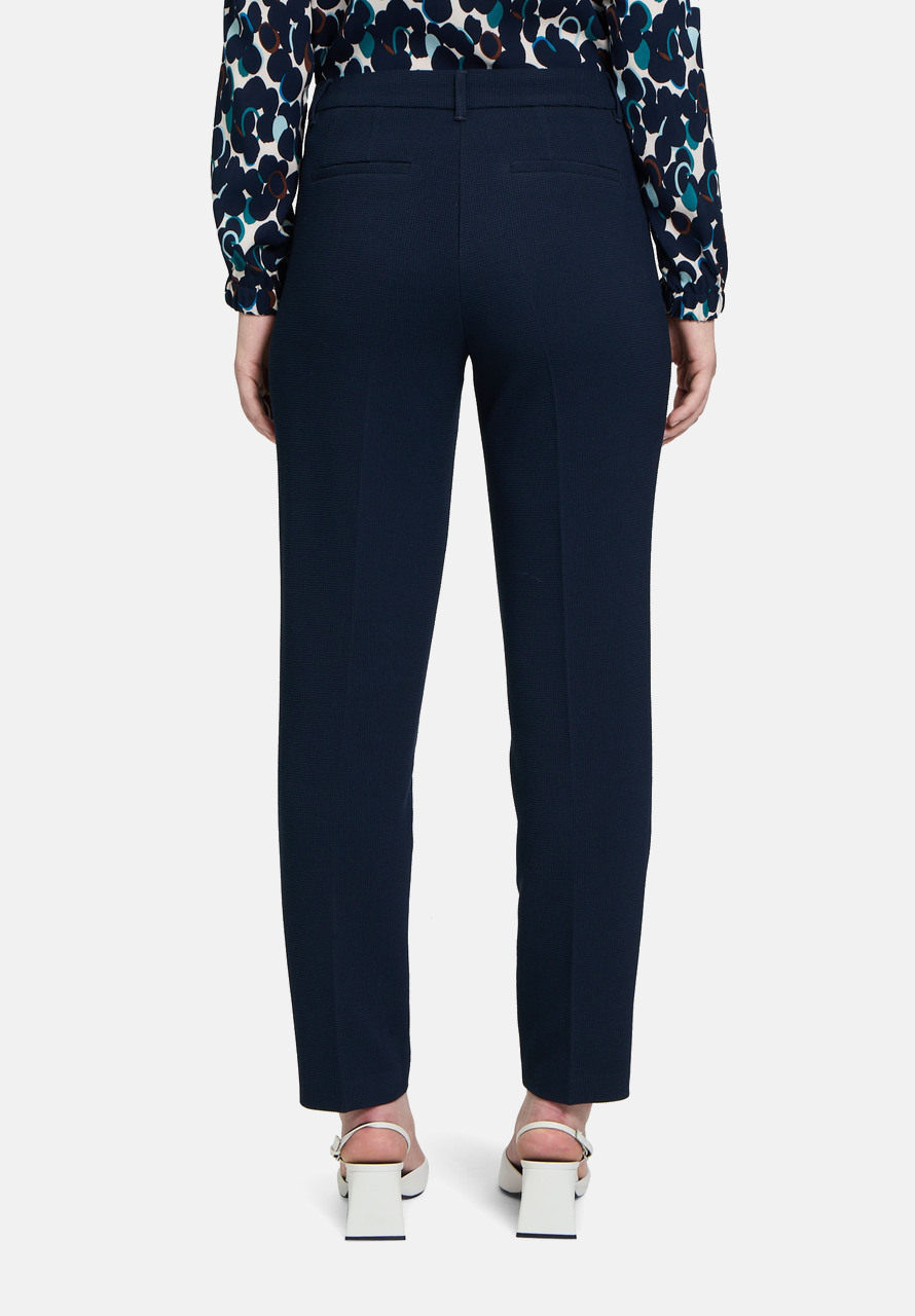 Зауженные брюки свободного кроя в мелкую клетку. Средняя посадка обеспечивает удобство, а пуговица и молния — надежную фиксацию. Карман с окантовкой завершает классический образ и делает брюки идеальными для офиса и повседневной носки.