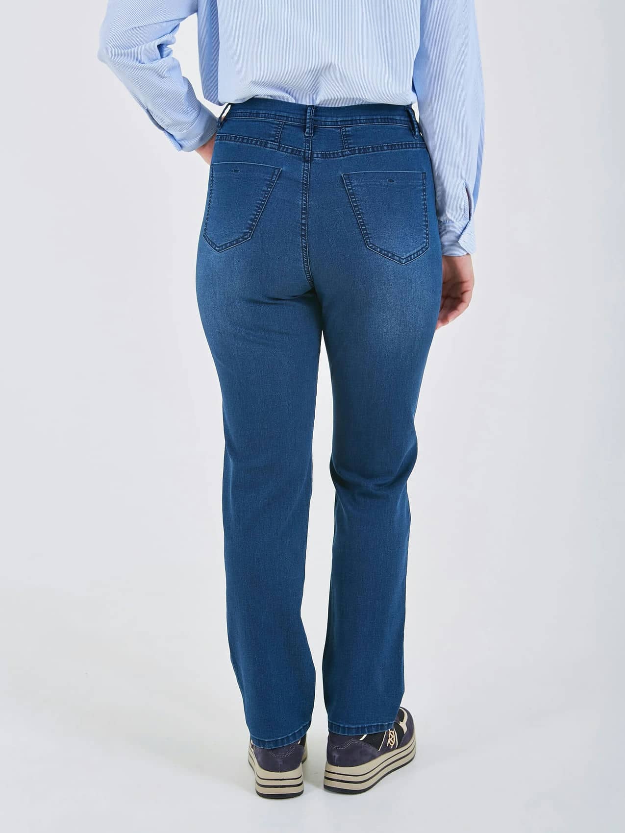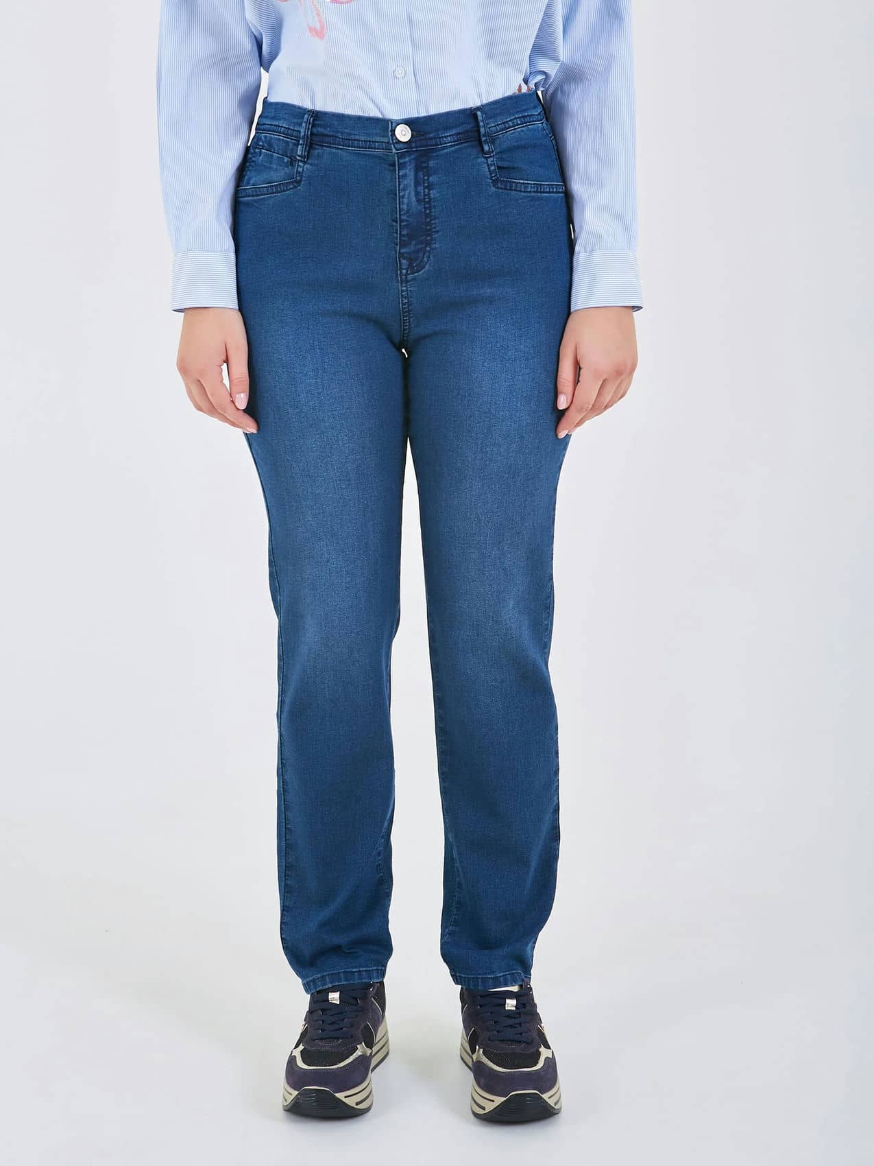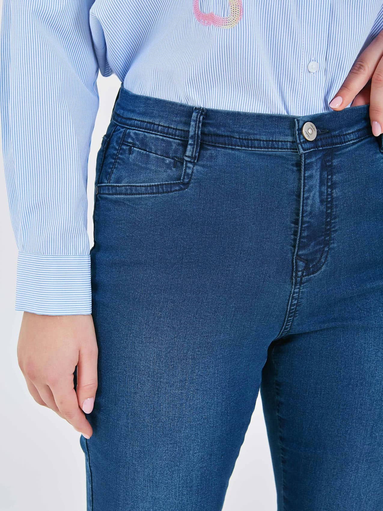 Классические джинсы — универсальный элемент гардероба из высококачественного денима с прямым силуэтом, идеально сочетающийся с любой одеждой для создания стильных образов. Коллекция Весна-Лето 2025. Капсула "Самарканд". Параметры модели: 95-64-101, рост 175, размер 44-46