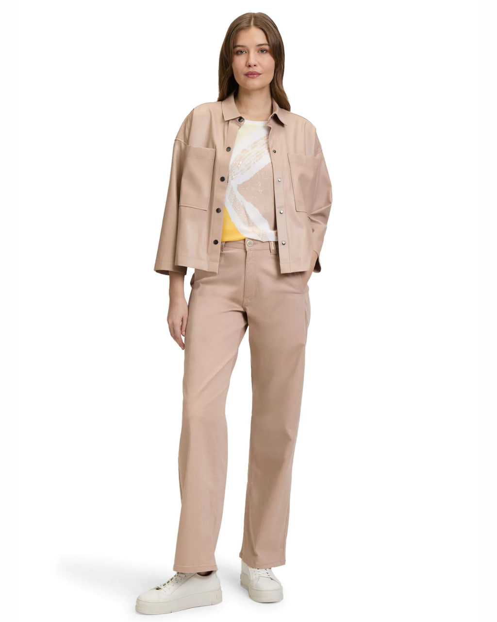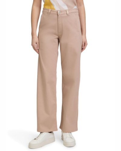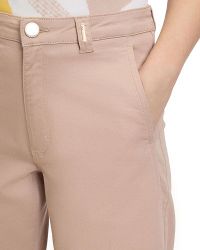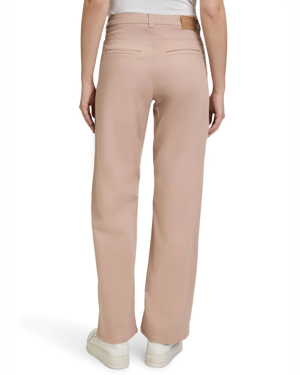 Универсальные брюки Betty&Co бежевого цвета. Хлопковая модель на стандартной застежке, врезные карманы по бокам и сзади. Брюки - база на каждый день.