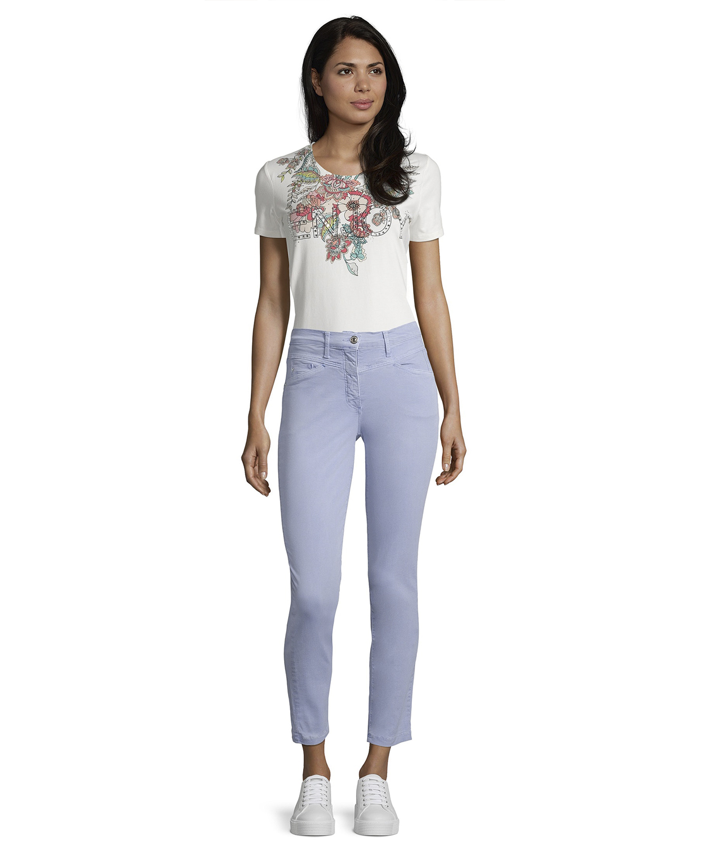 Однотонные брюки - универсальная модель! Брюки средней посадки, силуэт slim подчеркивает стройные ноги. Оригинальный крой с кокеткой. Приятный к телу материал из хлопковой смеси. Необычный цвет брюк освежит образ и станет стильной изюминкой в сочетании с любым вариантом верха и обуви.