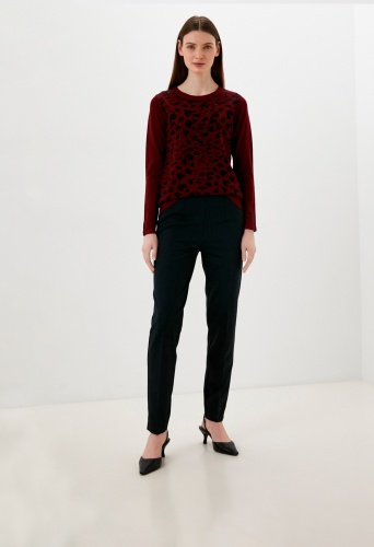 На сайте указаны Российские размеры. Анималистичный принт – бесспорный тренд этого сезона! Джемпер в насыщенном бордовом оттенке с леопардовым узором украшен стразами. Овальный вырез горловины подчеркивает изящество линии шеи. Прямой крой прекрасно подходит к разному типу фигуры. Джемпер хорошо сочетается как с брюками, так и с юбкой.