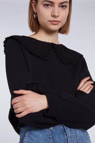 Повседневная толстовка оверсайз с эффектным воротником и рукавами реглан для стильного образа. Сзади разрез и пуговицы. Материал из органического хлопка высокого качества. Длина 42 российского размера: 60 см.