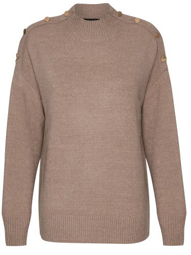Базовый джемпер в теплом коричневом оттенком. Прямой силуэт,воротник-стойка в рубчик. Спущенная линия плеч, длинный втачной рукав с манжетой в рубчик.
