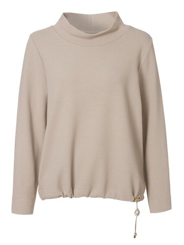 Базовый джемпер с широким воротником-стойкой. Свободный крой, кулиска по низу изделия. Длинный втачной рукав.