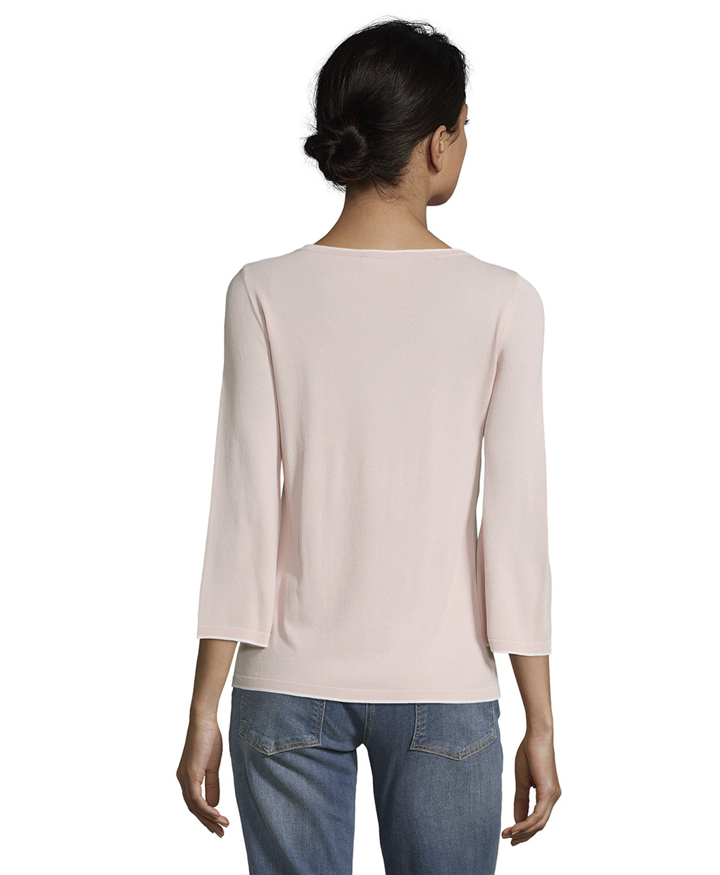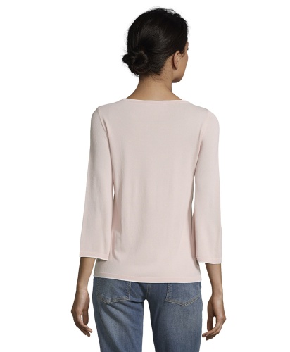 Однотонный джемпер - современная классика! Слегка приталенный силуэт джемпера подчеркивает достоинства фигуры. Вырез горловины "лодочка", рукава 3/4. Элегантная деталь дизайна - бант в области горловины. Материал из вискозной смеси приятен к телу и обеспечивает комфорт. Этот универсальный джемпер прекрасно смотрится как с брюками, так и с юбкой.