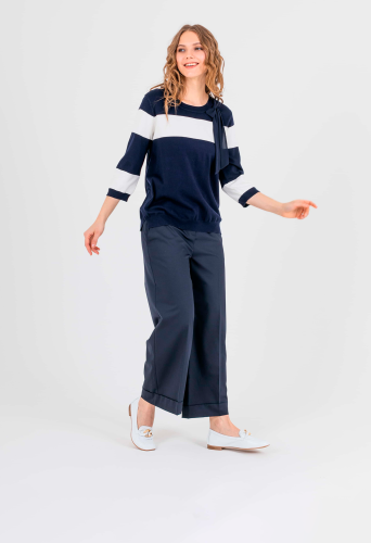 На сайте указаны российские размеры. Ткань: 60% вискоза, 35% нейлон. Крой: слегка приталенный джемпер из мягкой вискозы. Благодаря нейлону в составе изделие хорошо держит форму, не деформируется в процессе носки и стирки. Имеет достаточную длину, которая хорошо прикрывает область живота и часть бедер, что позволяет деликатно скрыть возможные недостатки фигуры. Отделка: в верхней части джемпера располагаются завязки, которые можно оформить в узел или в бант. Короткий рукав украшает изысканный круглый вырез, добавляющий романтичности всему образу. Найдите идеальную пару в разделах юбок, брюк и джинсов на нашем сайте.