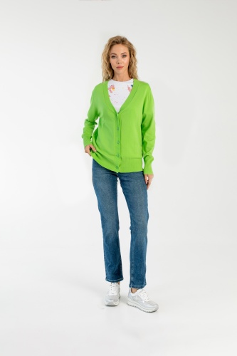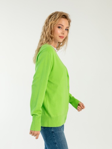 На сайте указаны Российские размеры. Кардиган яркого актуального цвета скроет все несовершенства фигуры и подчеркнёт достоинства. Модель свободного кроя с глубоким V-образным вырезом. На пуговицах. Рукав полной длины со спущенным плечом. Выбрав этот кардиган, можно с уверенностью сказать - вы в тренде. Ткань: выполнен из уютного, теплого и приятного материала – трикотажа с акрилом и хлопком. Крой: кардиган прямого кроя с красивым V-образным вырезом, подчеркивающим красоту шеи и зоны декольте. Может выступать самостоятельной деталью гардероба, так и компаньоном для водолазки, футболки, блузки и рубашки. Рукав с манжетом-резинкой позволяет регулировать длину, а еще согреет руки, если вы оставили дома перчатки. Вязка-резинка в нижней части надежно фиксирует кардиган на теле, не позволяя ему подниматься вверх при ходьбе и движении. Отделка: однотонный лаконичный кардиган сочного салатового цвета дополнен контрастными пуговицами. Рост модели - 177 см