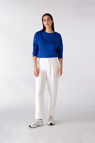 Немецкий бренд. На сайте указаны Российские размеры. Повседневная толстовка со спущенными плечами. Спортивные ребристые манжеты на рукавах, кромке и вырезе горловины. Вышивка "люби себя" на левой стороне груди. Круглый вырез спортивного кроя. Модель отлично сочетается с шортами OUI (арт.76362)