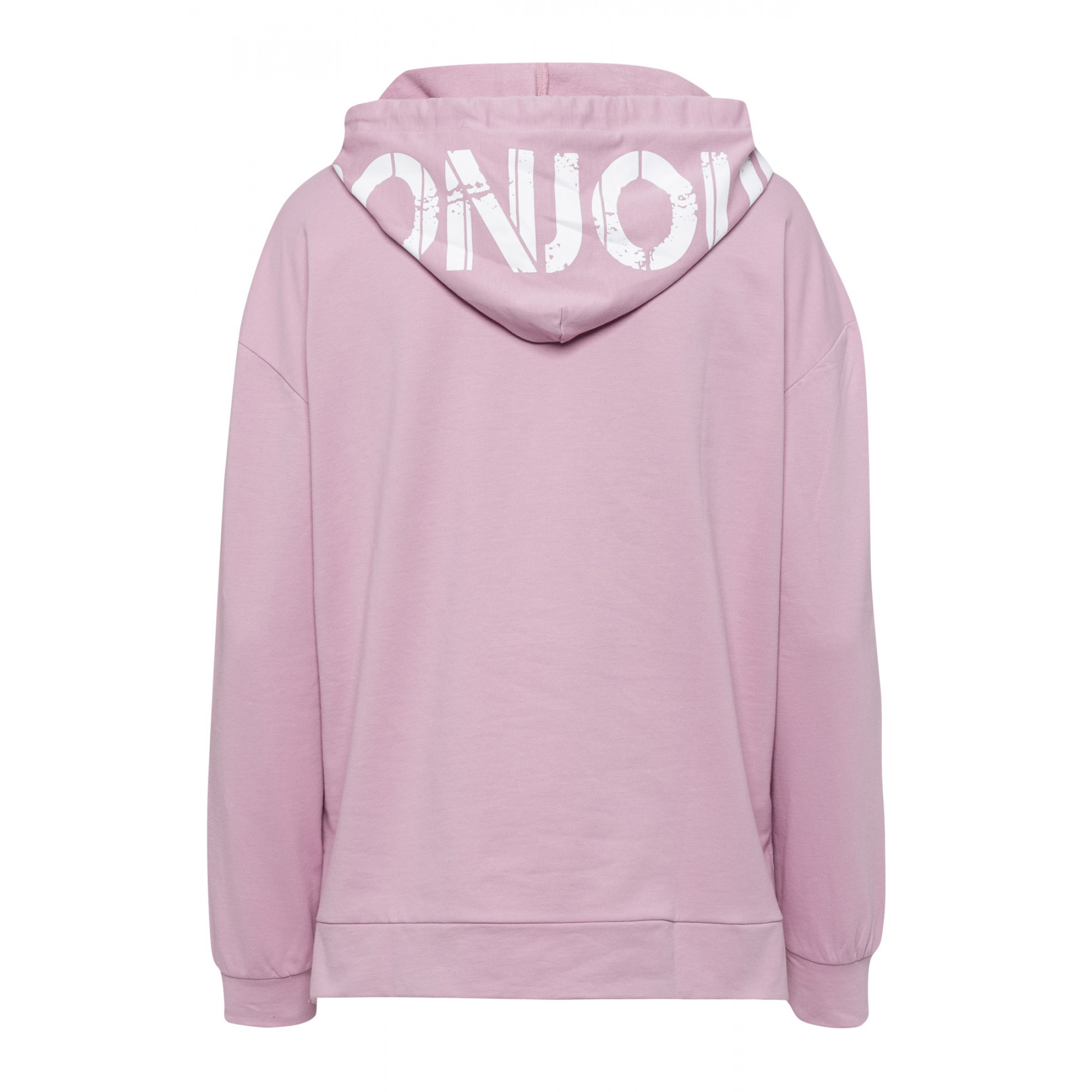 Толстовка свободной формы. Карман-кенгуру спереди. Капюшон с надписью "BONJOUR" на спине. Длинные рукава с манжетами. Длина в размере 42 = 64см