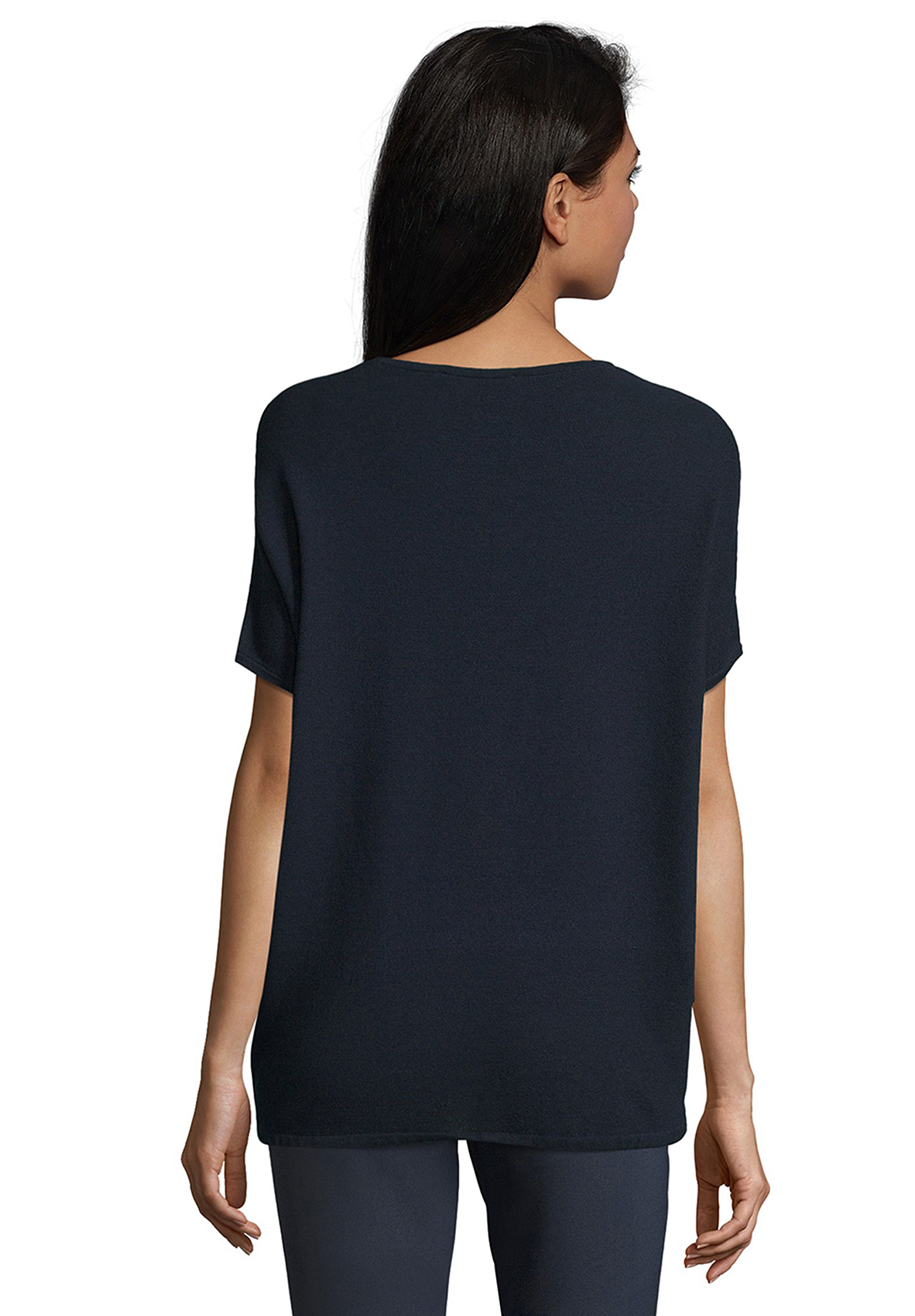 Лаконичный дизайн джемпера позволяет создавать множество стильных комплектов. Джемпер прямого покроя, вырез горловины "лодочка", короткие цельнокроеные рукава, кулиска по ниу изделия. Приятный к телу материал из вискозной смеси обеспечивает комфорт.