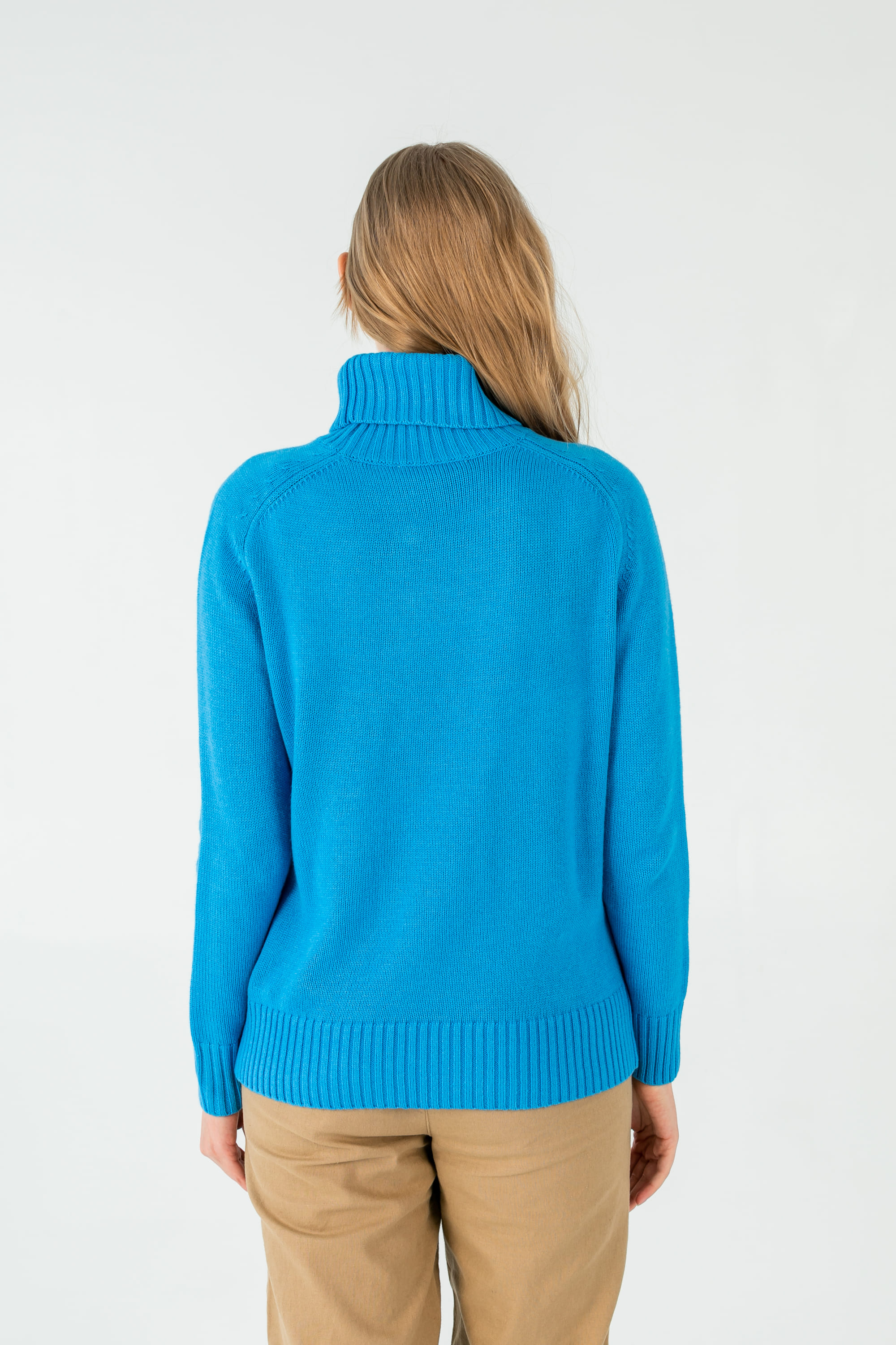 На сайте представлены российские размеры. Ткань: смесовый материал средней плотности. В составе: 85% акрил, 15% шерсть. Крой: однотонный джемпер слегка приталенного силуэта. Модель по типу водолазки – идеальная база для создания многочисленных повседневных образов. Надежно защищает горло от холода и ветра. Плотный, не просвечивающий, он подчеркивает все достоинства фигуры и скрывает недостатки. Отделка: рукава, ворот и низ изделия отделаны резинкой. Базовая модель сочетается с любым ассортиментом из вашего гардероба – юбками, брюками, комбинезонами, куртками и бомберами. Рост модели 177 см