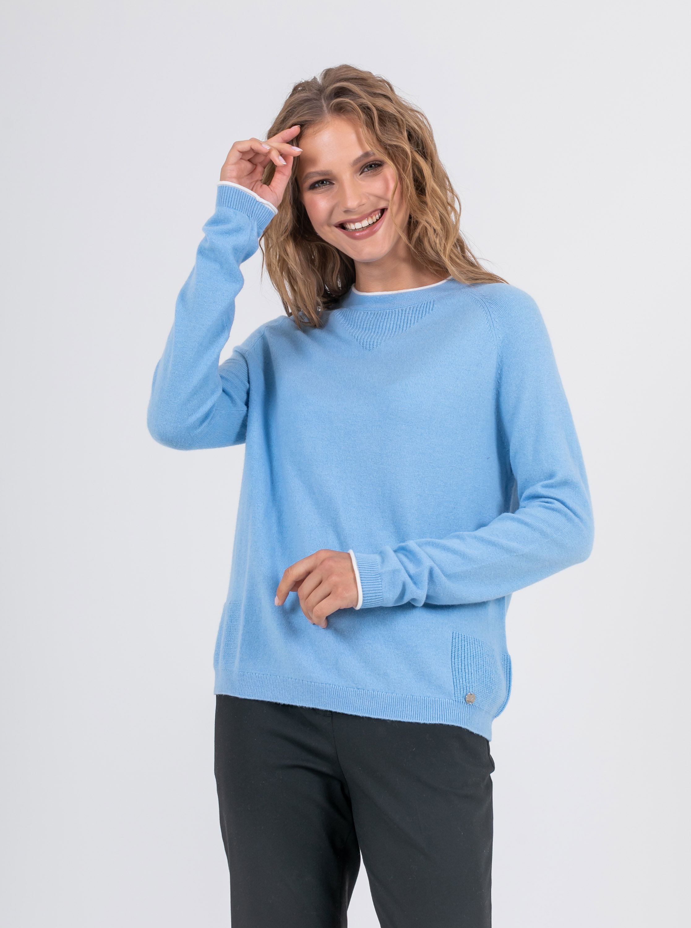 На сайте указаны российские размеры. Ткань: выполнен из смесовой ткани с добавлением шерсти (20%) и кашемира (5%) для непревзойденного тепла и уюта, а также вискозы (27%) и нейлона (48%) для эластичности, гладкости и сохранения свойств при стирке. Крой: джемпер средней длины прямого силуэта с круглым воротом. Базовая гладкая модель с длинным рукавом дарит тепло и уют, прекрасно садится на разные фигуры и гарантирует комфорт при движении. Отделка резинкой на манжетах и низе изделия обеспечивает прилегание к телу. Отделка: контрастная отделка рукавов и ворота делает образ современным и запоминающимся. Декоративные фактурные фрагменты в зоне ворота и по бокам смотрятся уместно и изысканно. Подберите идеальный низ в разделах юбок и брюк на сайте Stern.