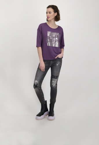 На сайте указаны российские размеры. Эта рубашка с рукавом ¾ от monari станет экстравагантной изюминкой вашего гардероба и обещает приятный и уютный комфорт благодаря обработке из струящейся вискозы, мягкого модала и небольшого количества эластана. Лакированная машина с окантовкой из сверкающих страз и надписями подчеркивает гламурный вид модели. Круглый вырез, концы рукавов и прямой низ с блестящим люрексом идеально дополняют образ. Будьте уверены в этой рубашке на каждой вечеринке или в повседневной жизни! Модель ростом 179 см. Длина спины 44 размера составляет 62 см.